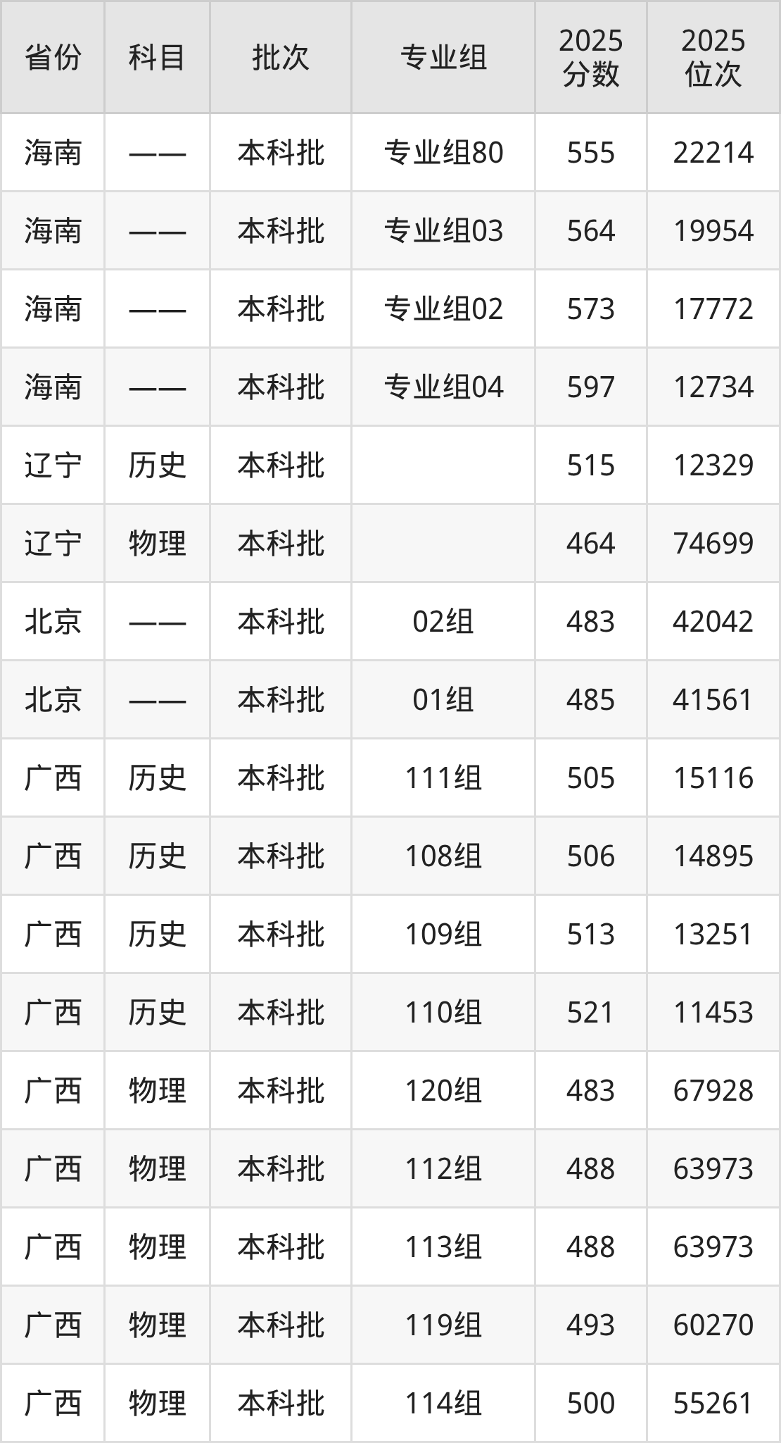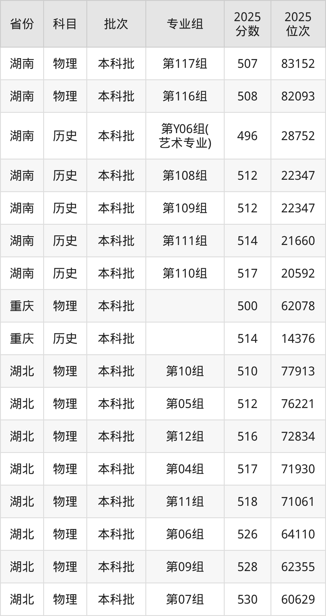 长沙学院119组:2025年投档录取最低分为493分,录取最低位次为60270名。