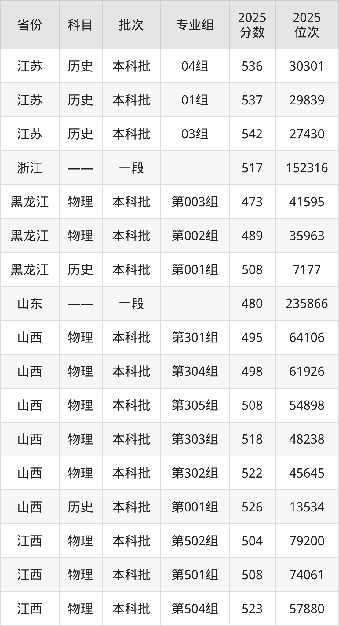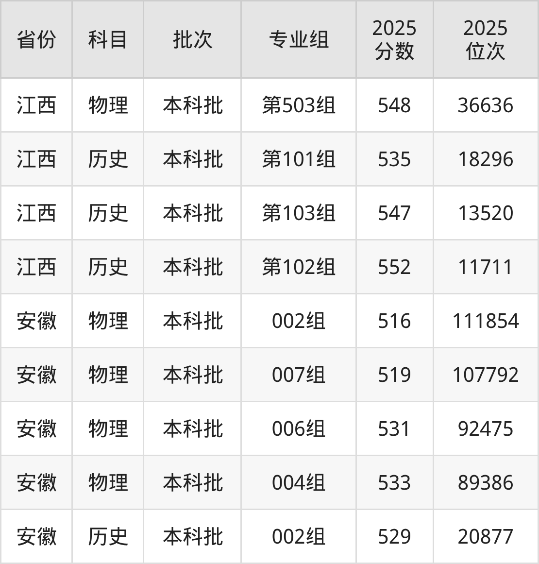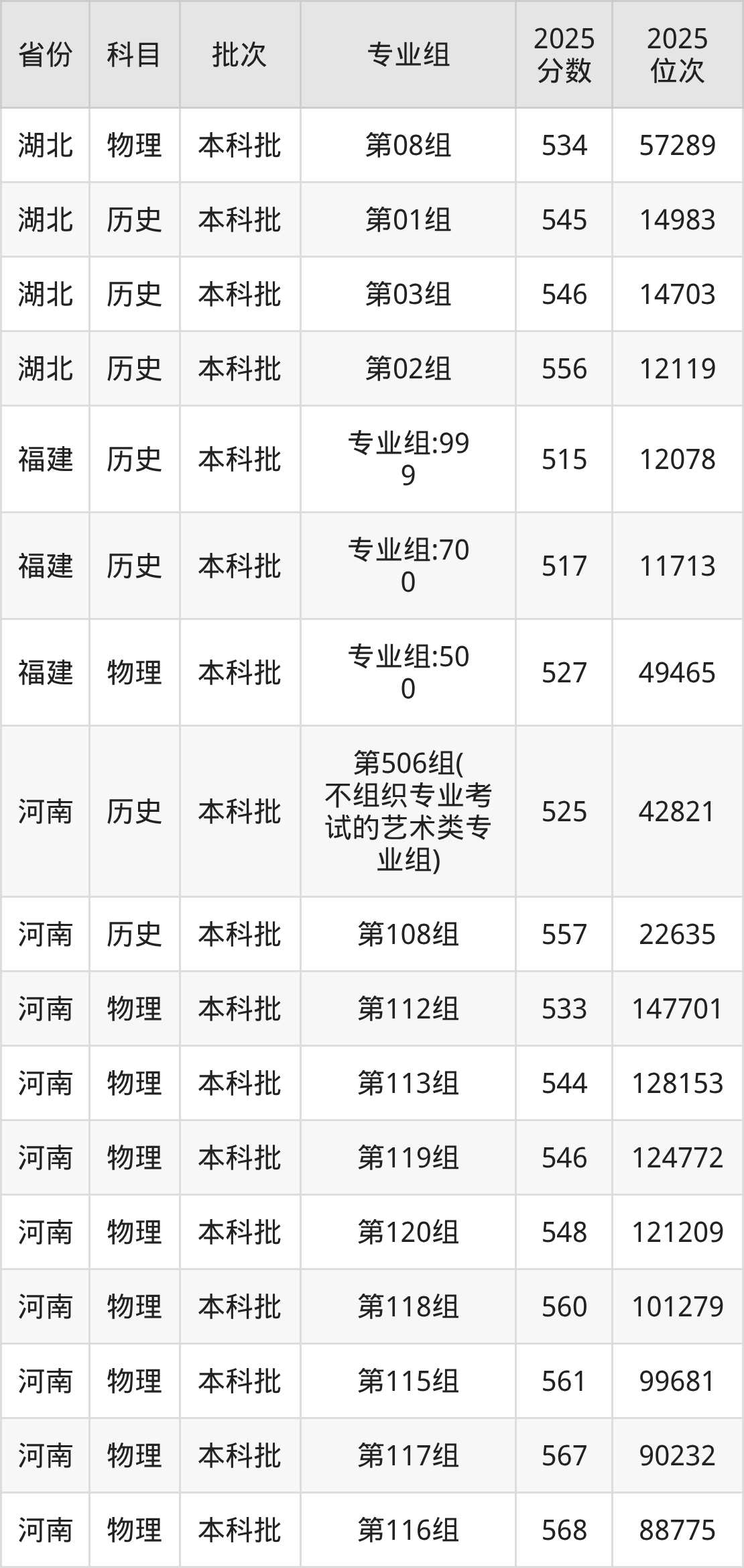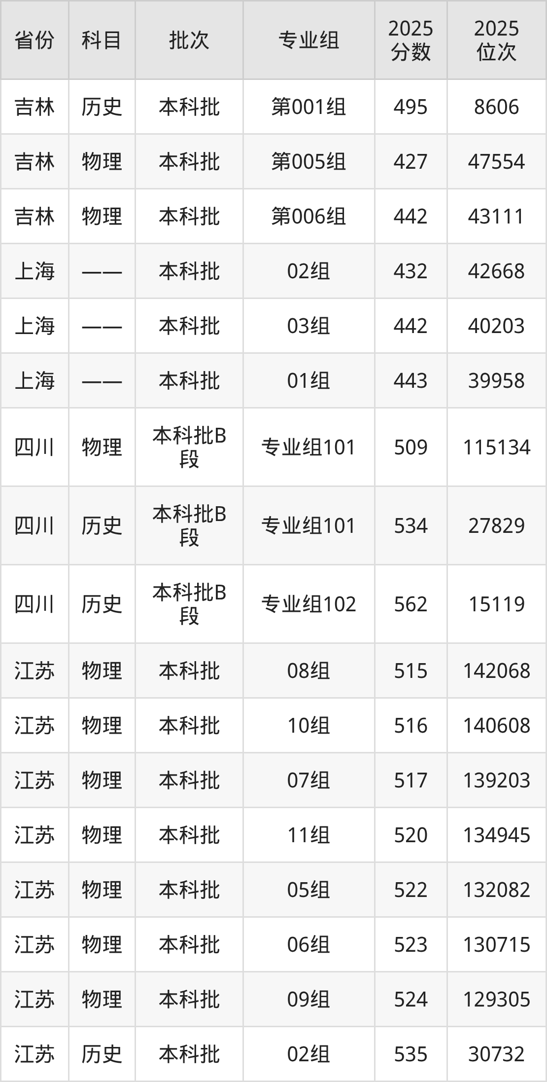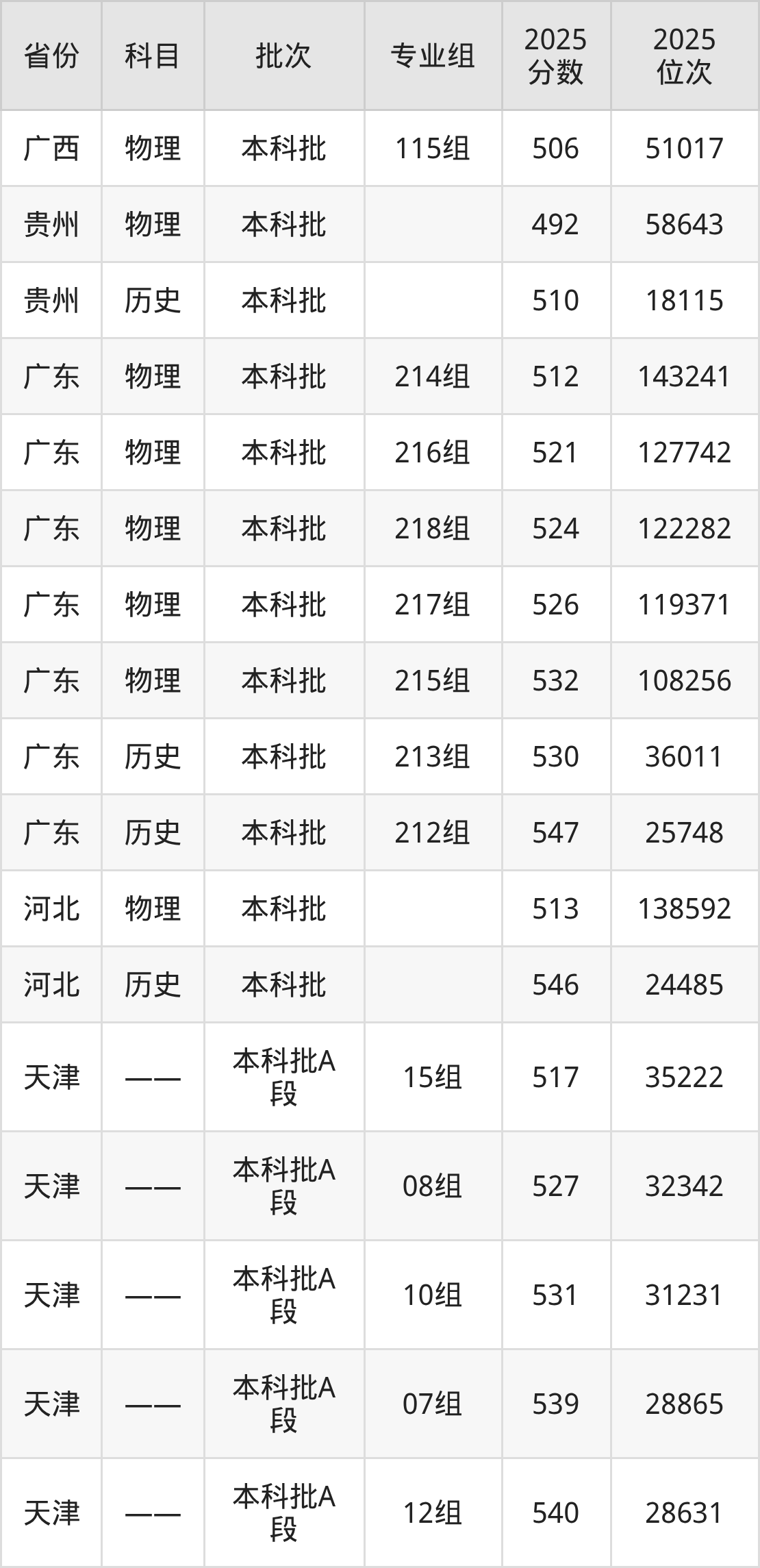 普通类本科物理类最低492分,本科历史类最低510分