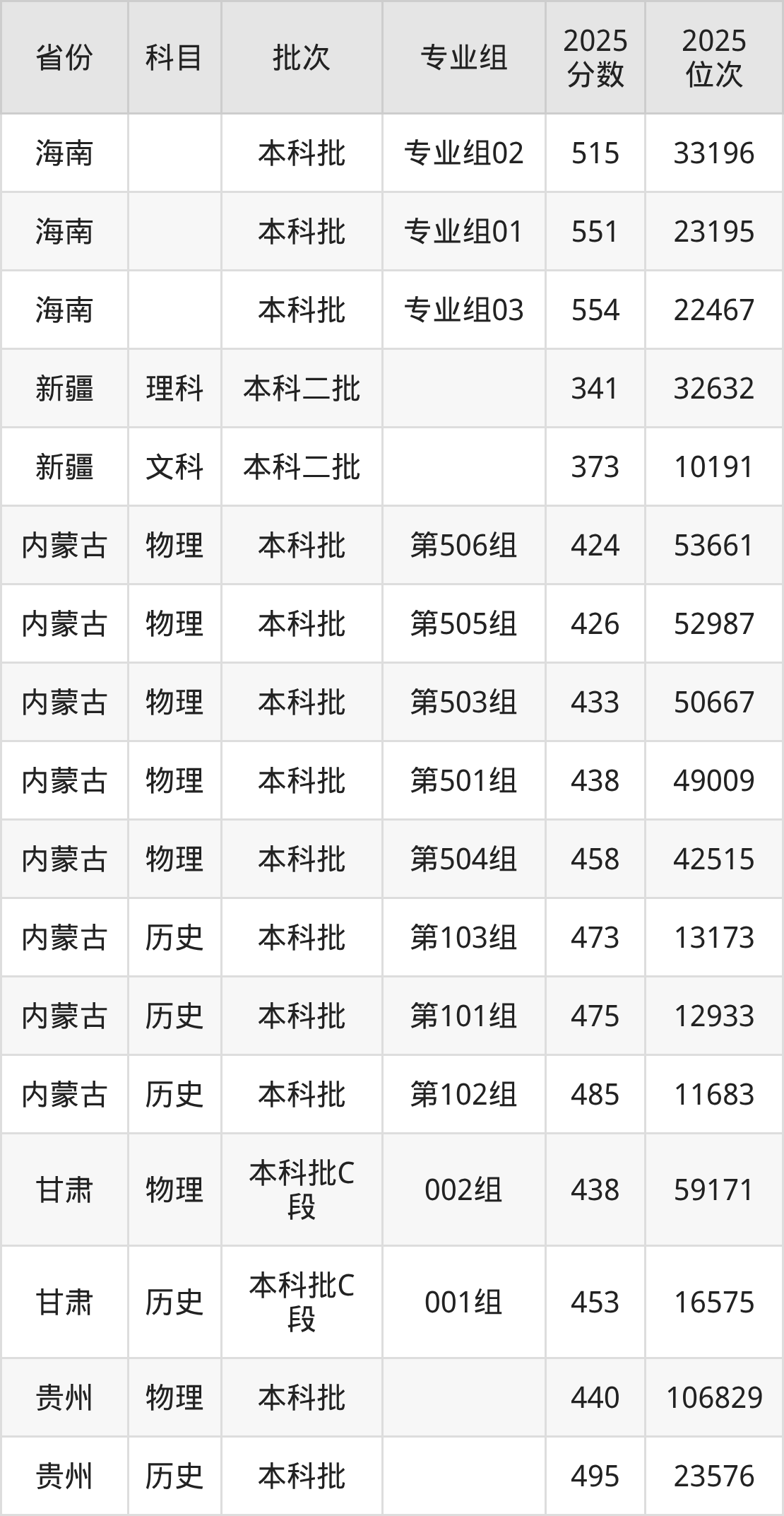 2025年投档录取最低分为501分,录取最低位次为14677名。