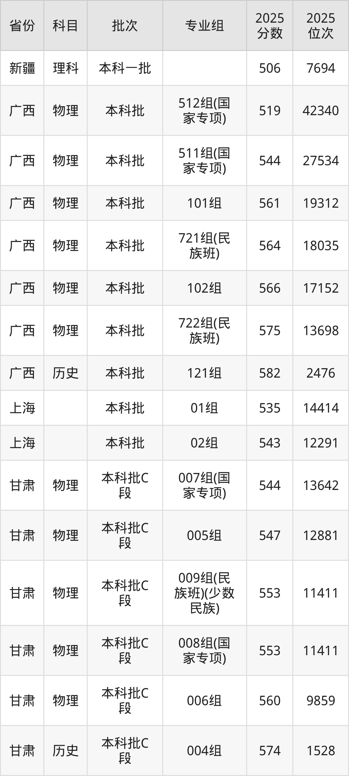 中国地质大学(北京)第008组(民族班):2025年投档录取最低分为584分,录取最低位次为8893名。