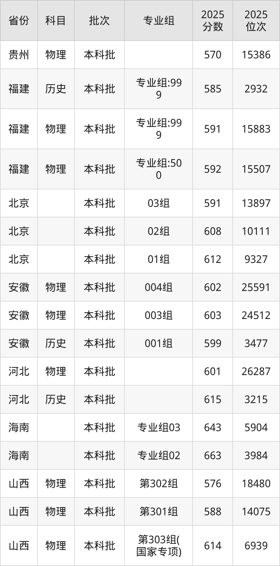 下面是2025年中国地质大学(北京)全国录取分数线一览表,请查阅。