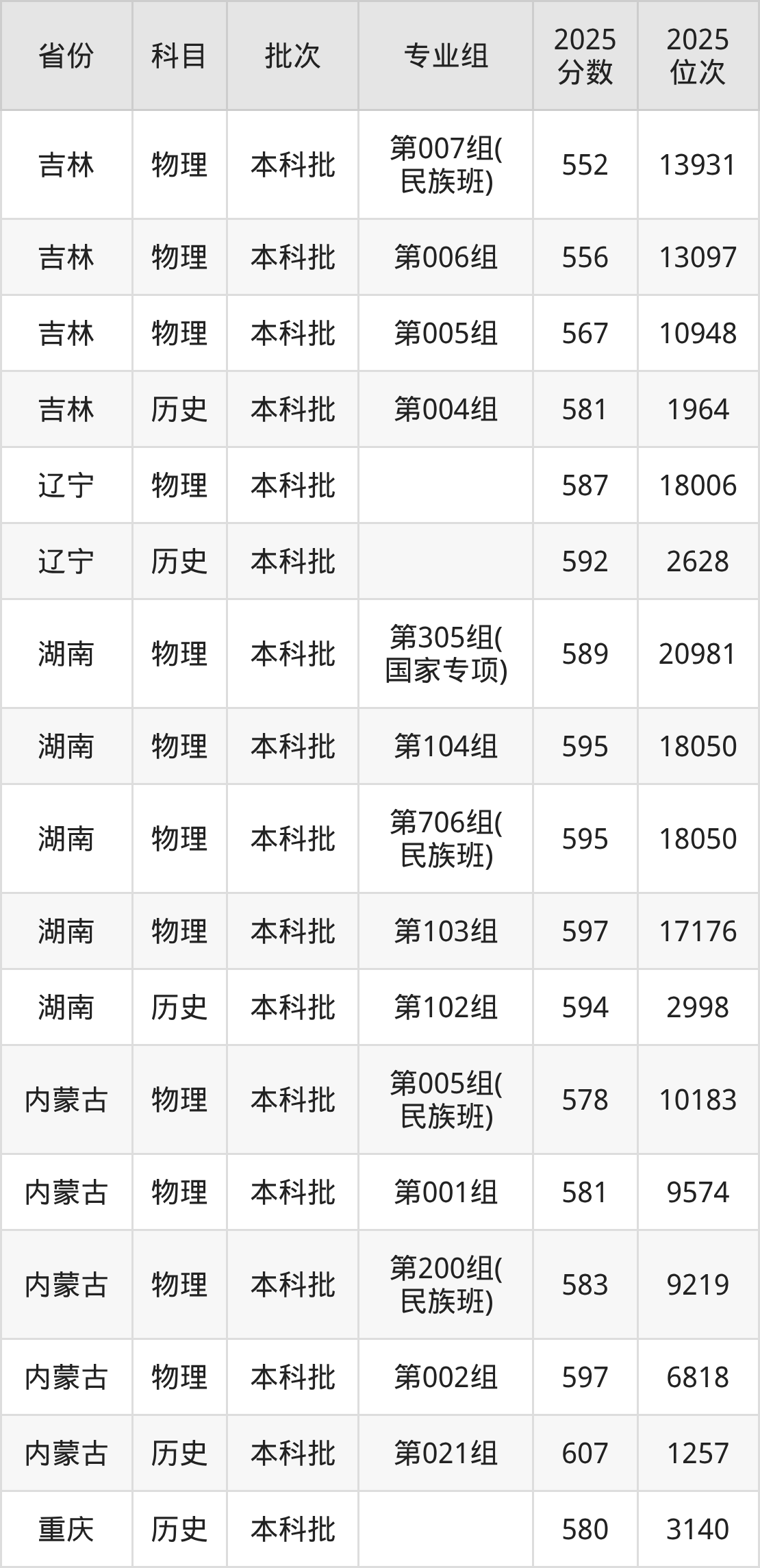 2025年投档录取最低分为592分,录取最低位次为2628名。
