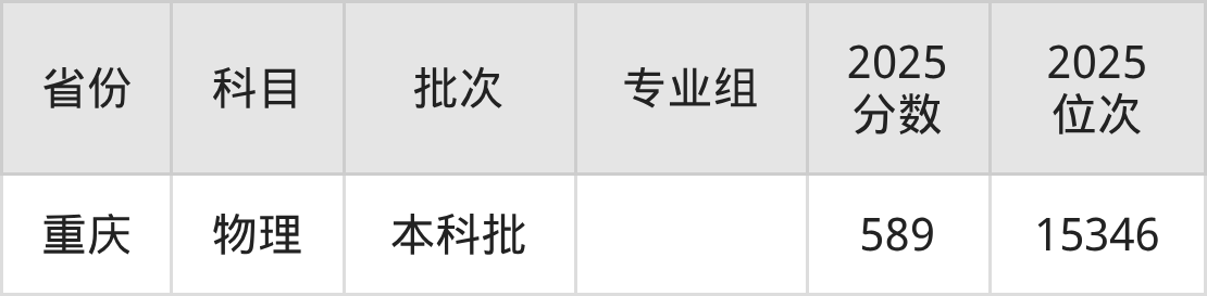 2025年投档录取最低分为589分,录取最低位次为15346名。