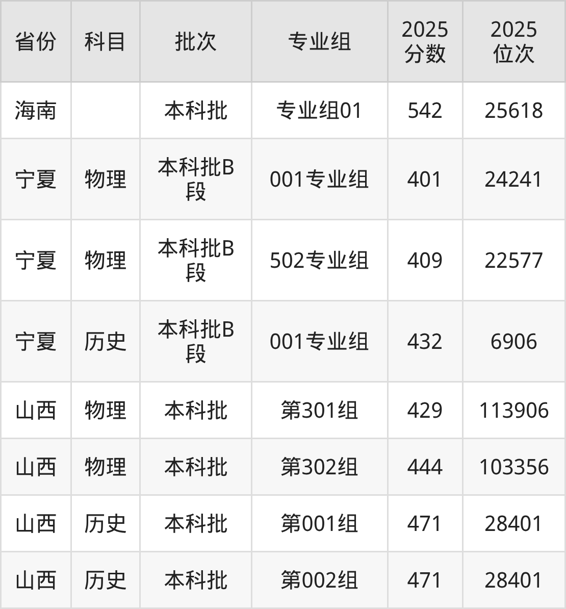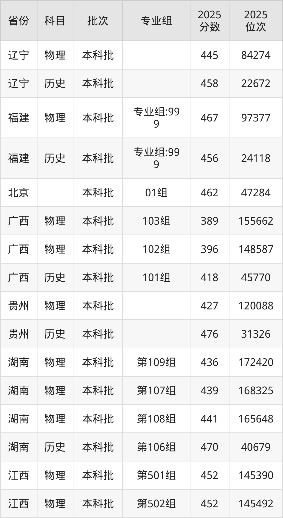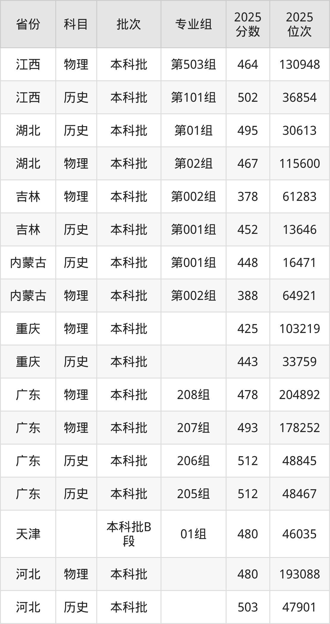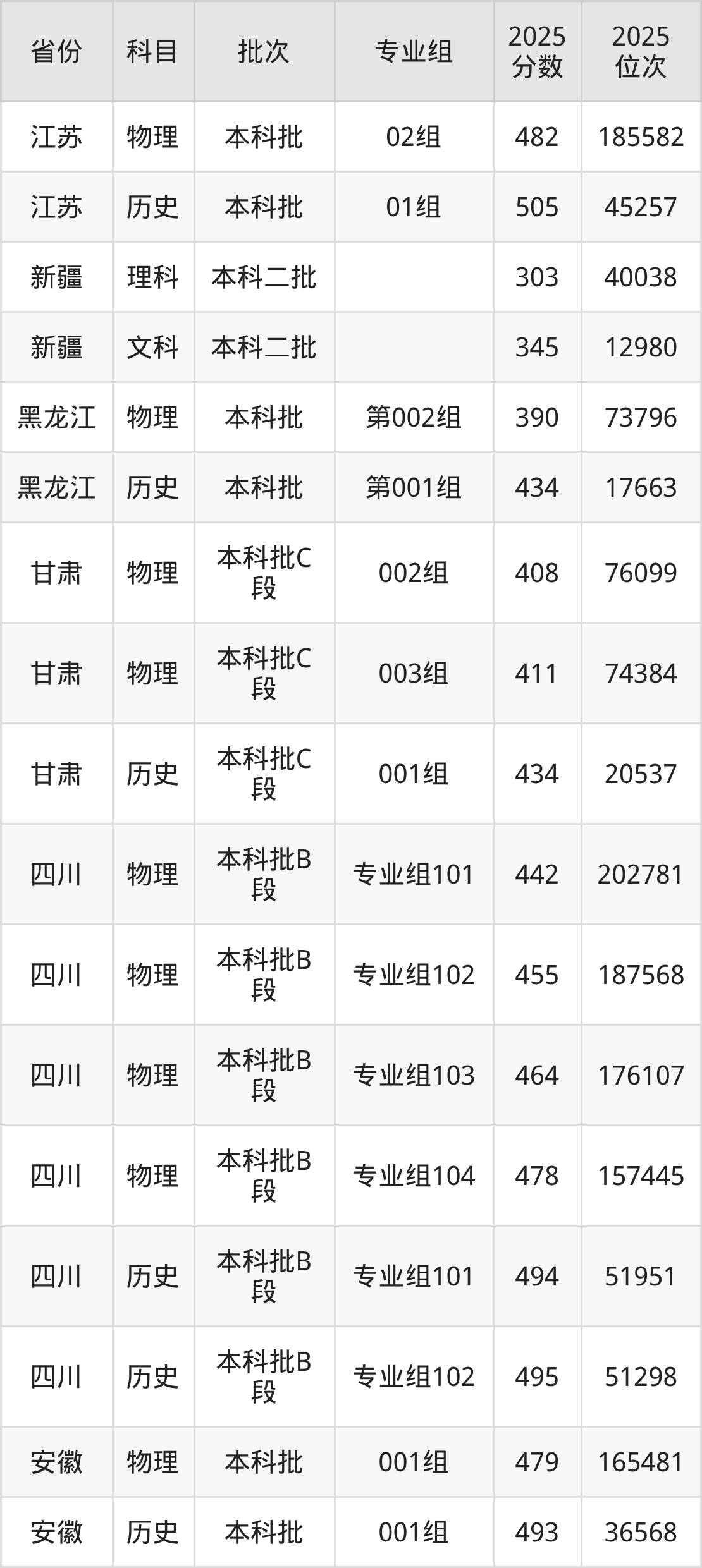 2025年投档录取最低分为345分,录取最低位次为12980名。