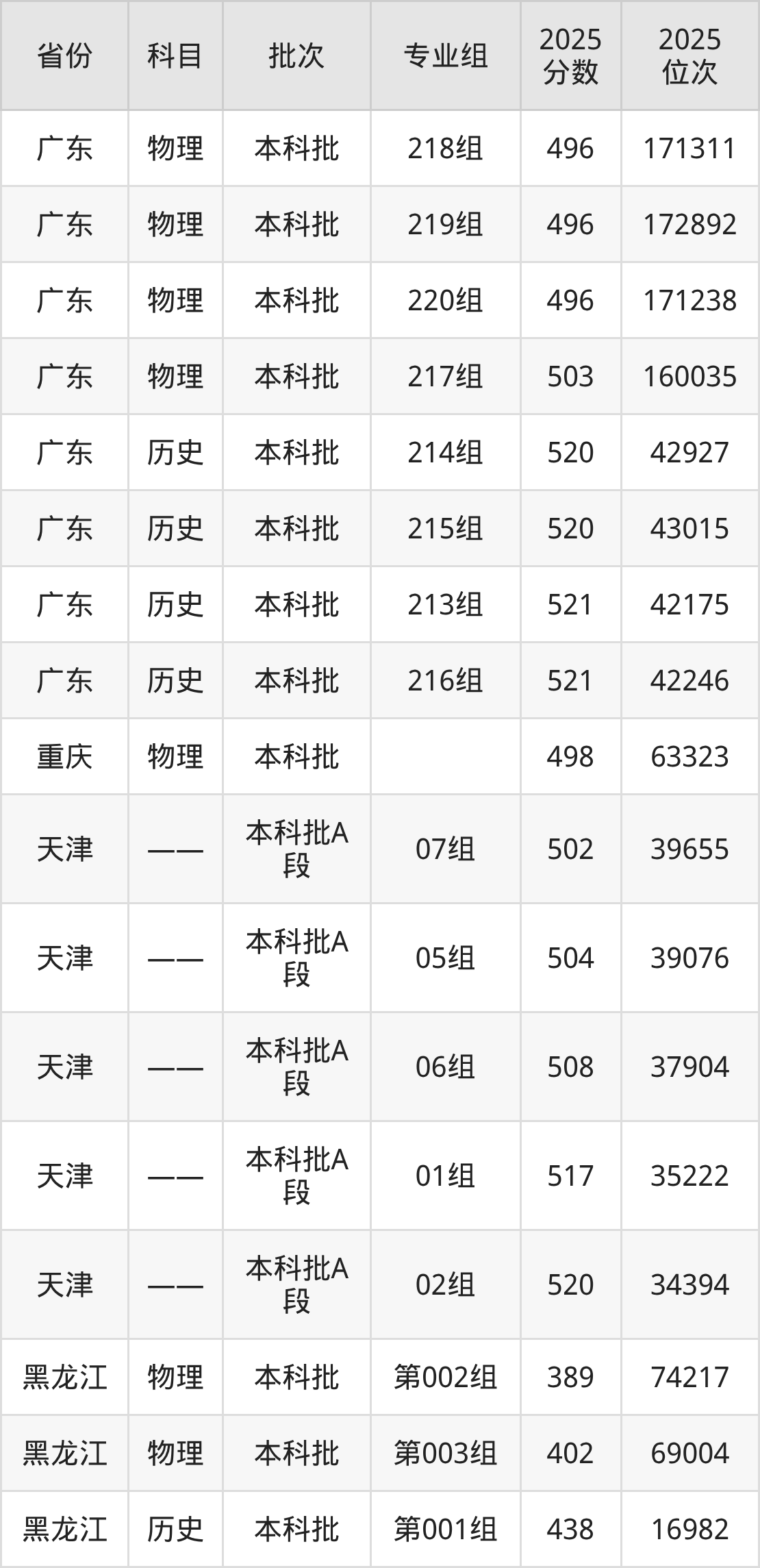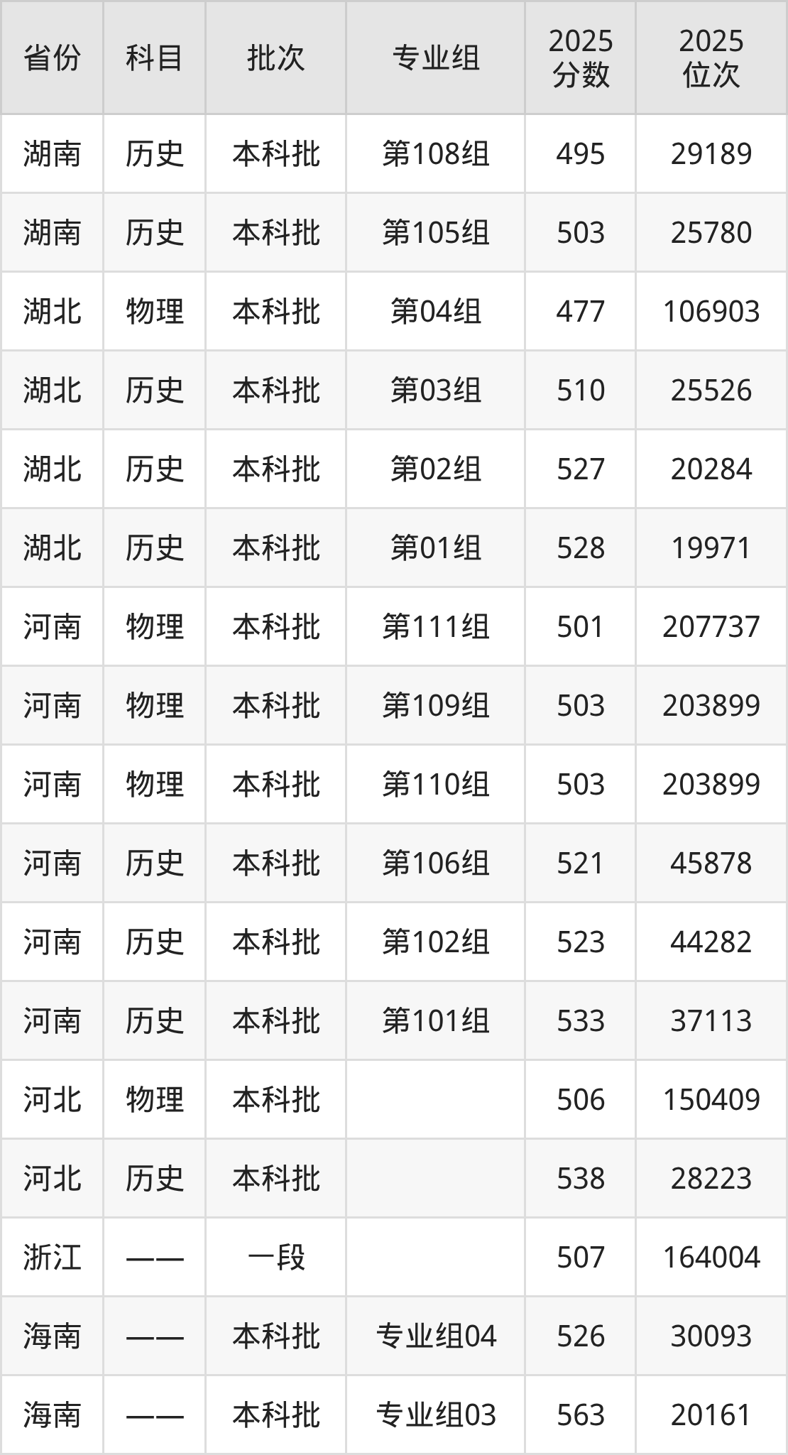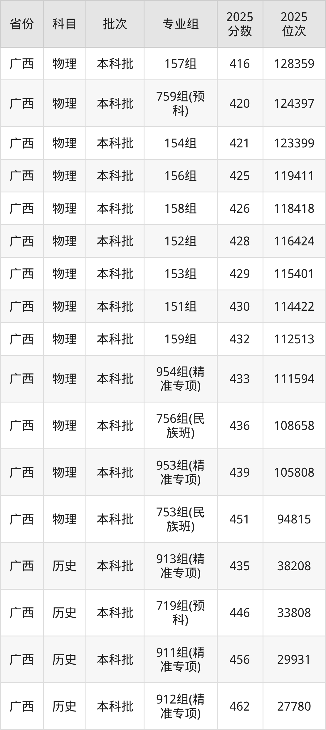 2025年在本科物理类进行招生,各专业组分数线详情如下: