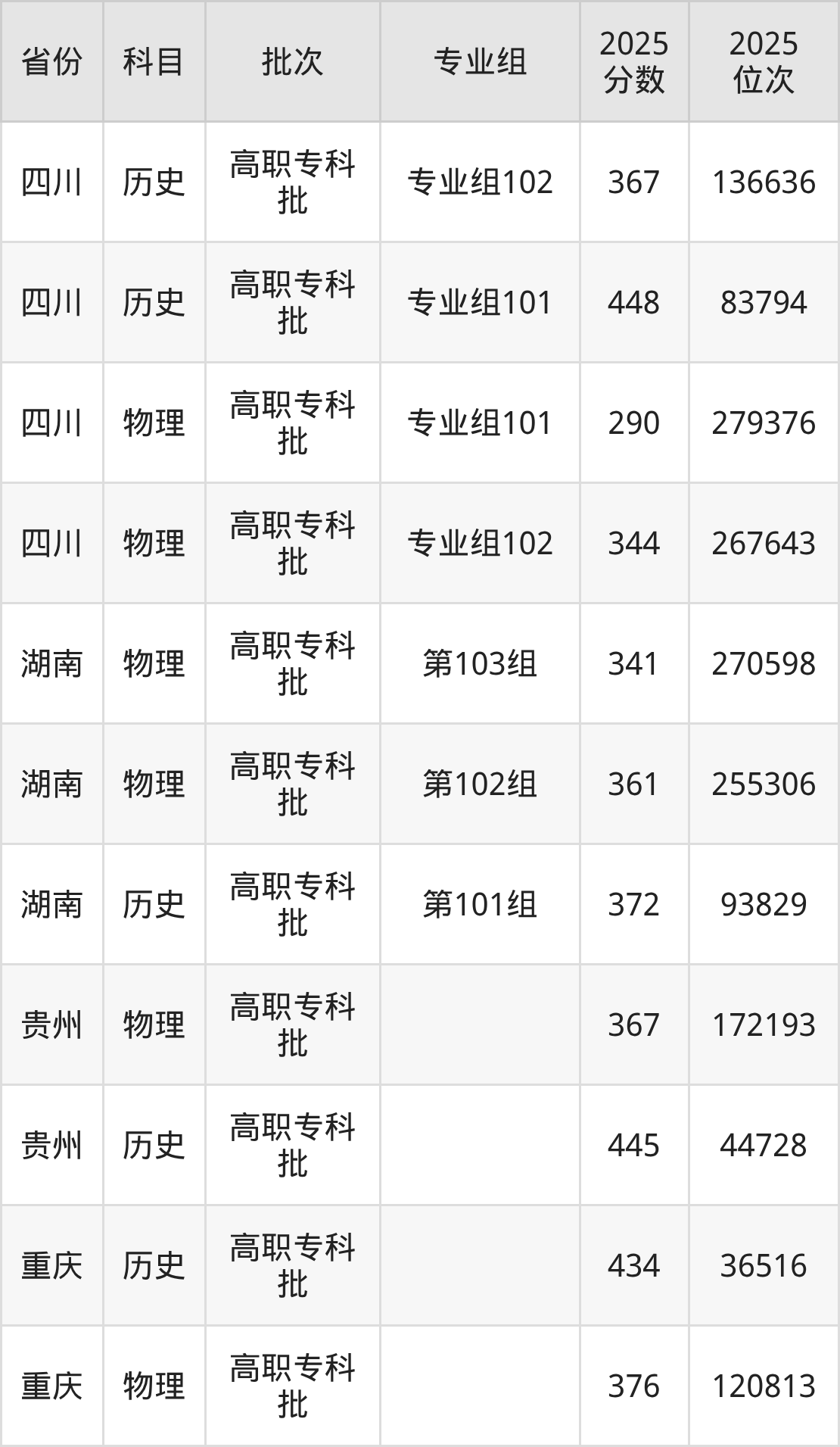 达州职业技术学院专业组102:2025年投档录取最低分为344分,录取最低位次为267643名。