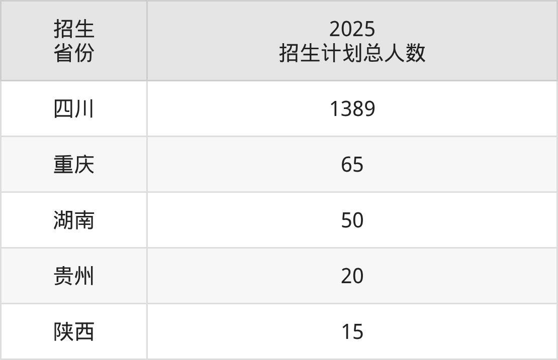 2025年达州职业技术学院面向全国5个省市开展专科招生;招生专业共31个,招生人数共1539人。2025年在四川省招生计划总人数是1389人,其中,达州职业技术学院在四川省招生人数最多的是临床医学。达州职业技术学院在各省具体招生人数情况如下表。