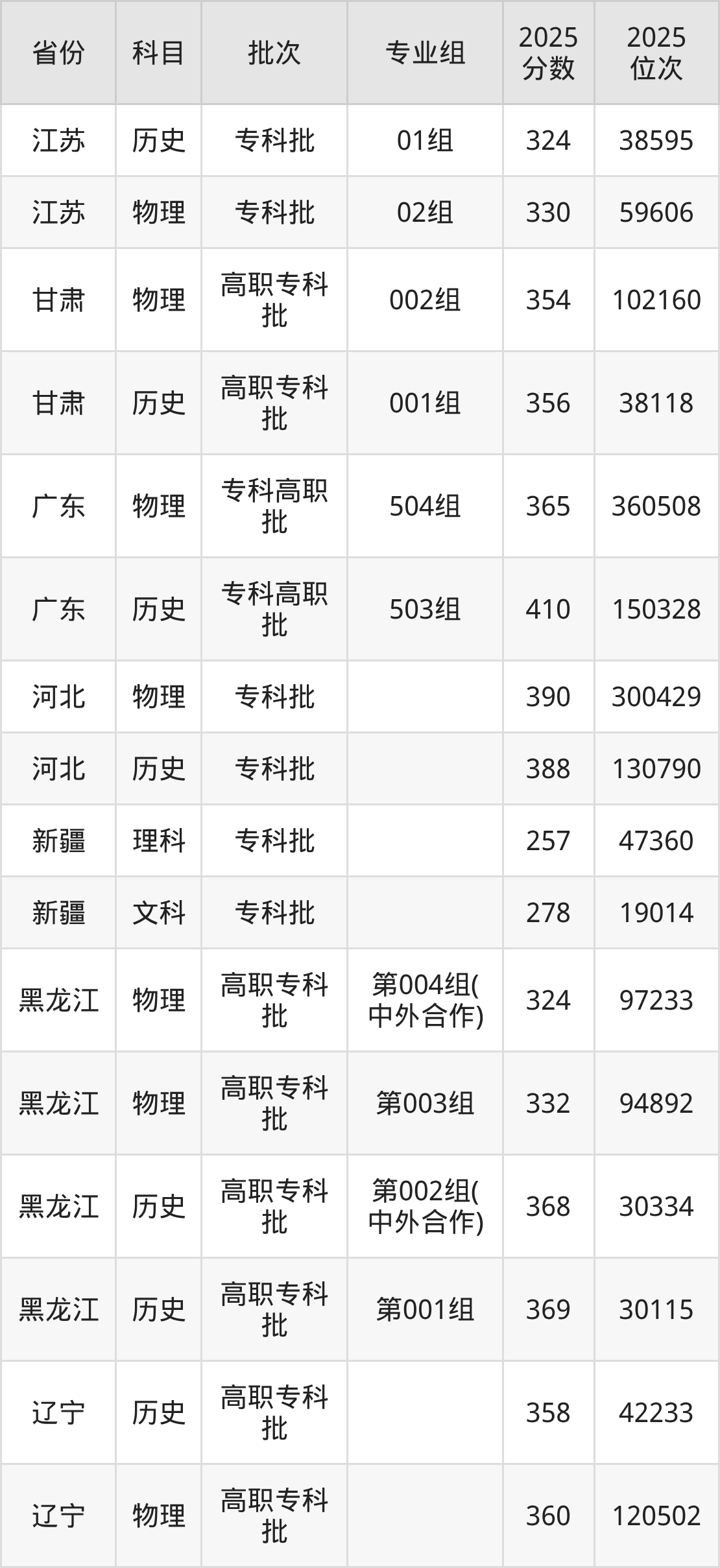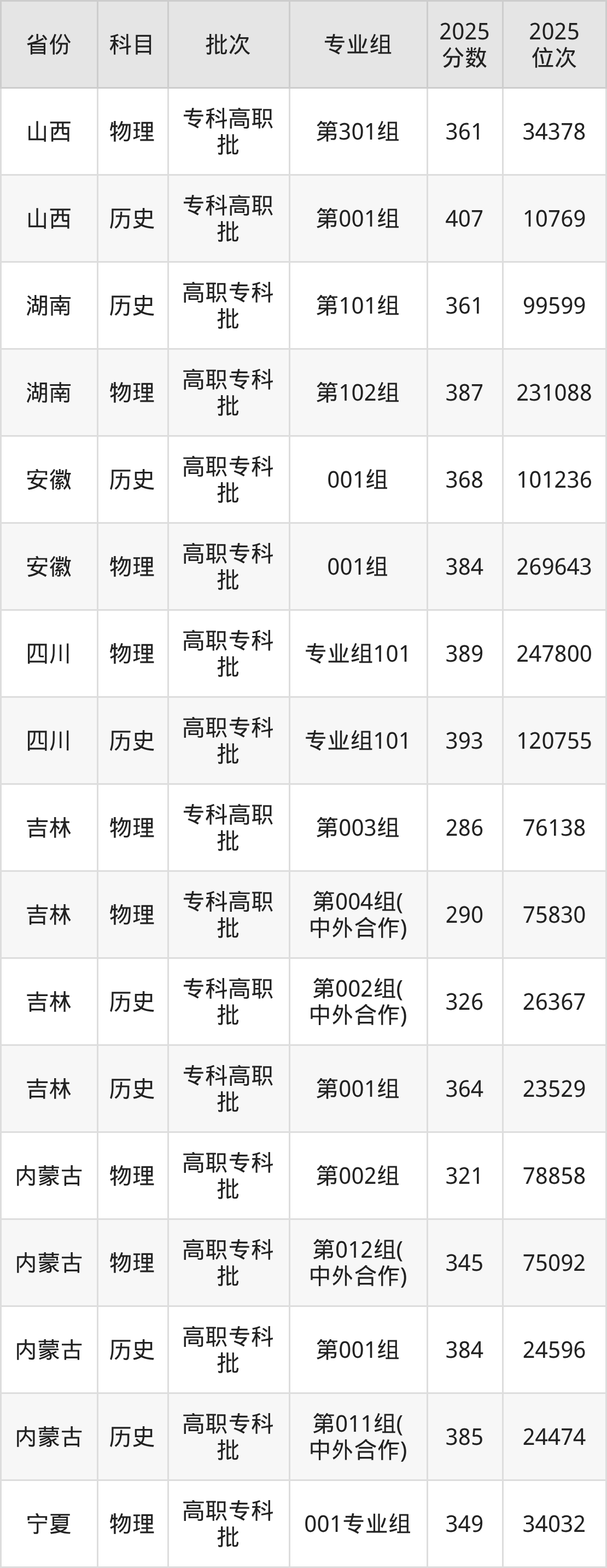 长春金融高等专科学校第001组:2025年投档录取最低分为369分,录取最低位次为30115名。