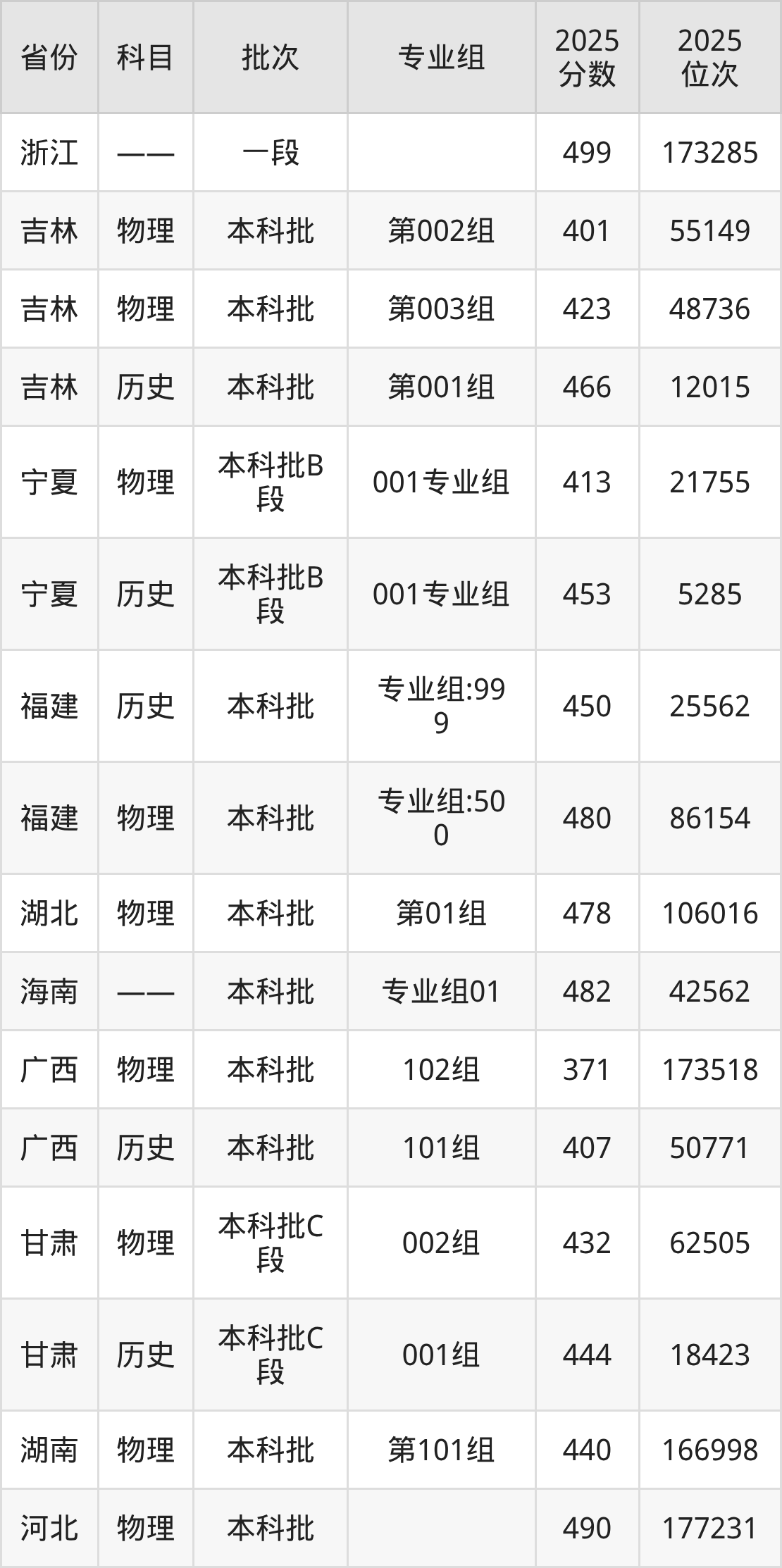 普通类本科物理类最低401分,本科历史类最低466分