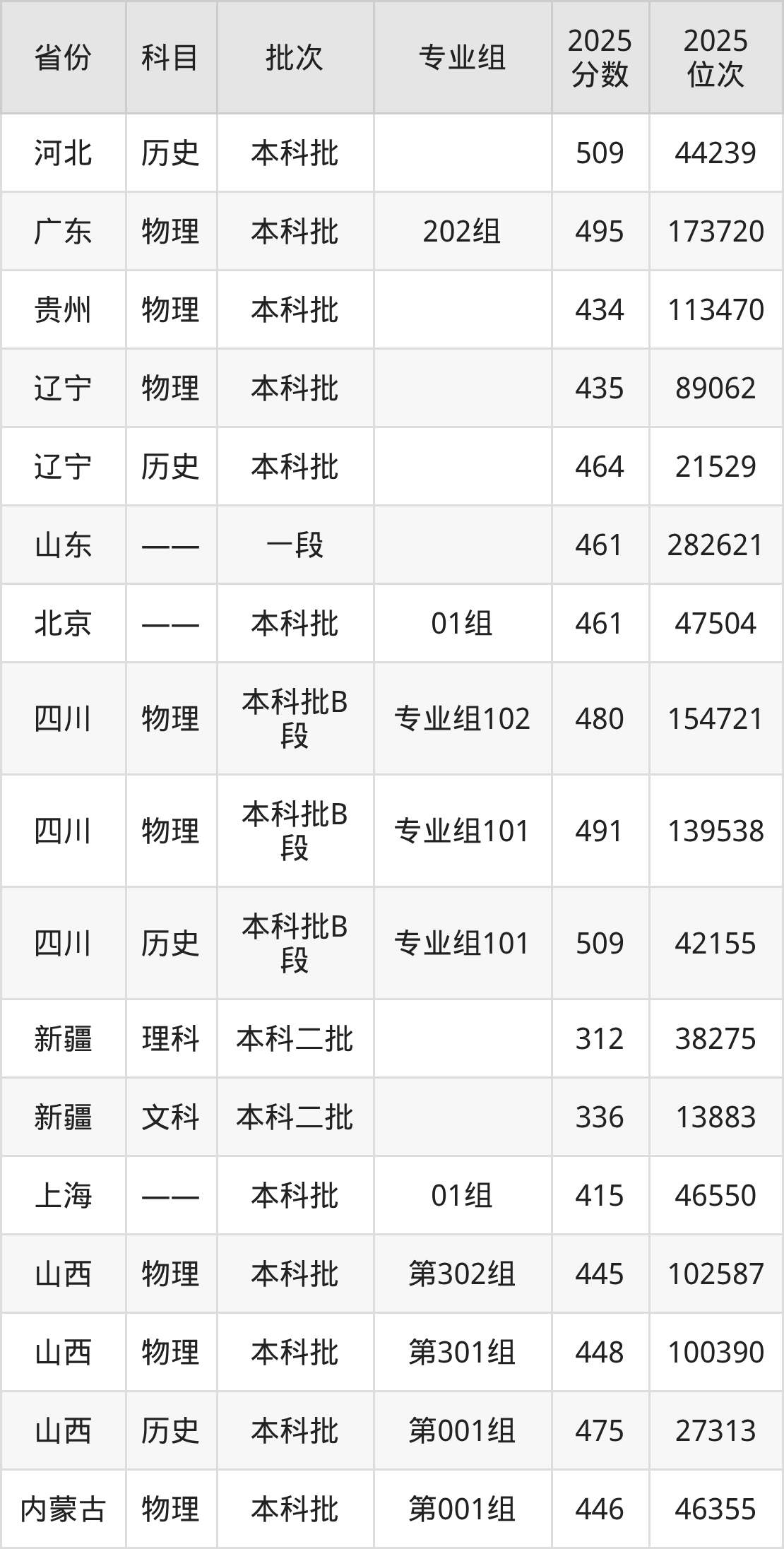 西安交通大学城市学院第302组:2025年投档录取最低分为445分,录取最低位次为102587名。