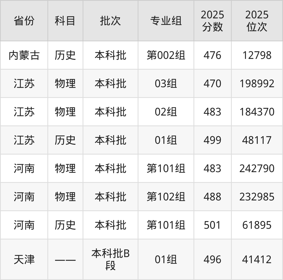 一段:2025年投档录取最低分为499分。