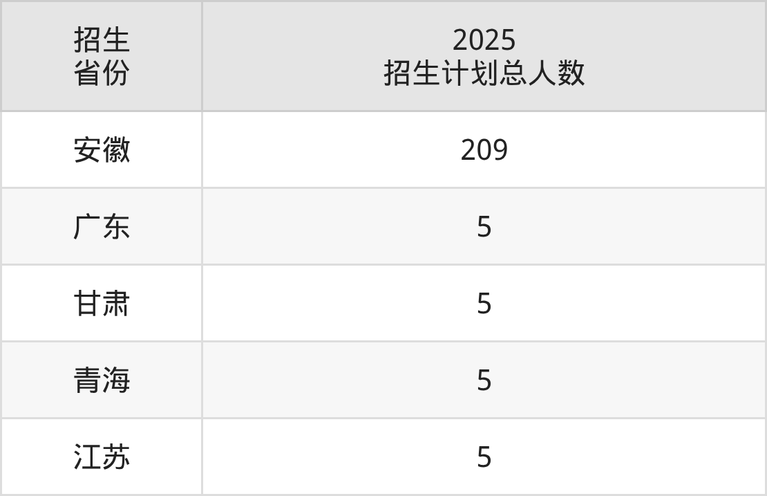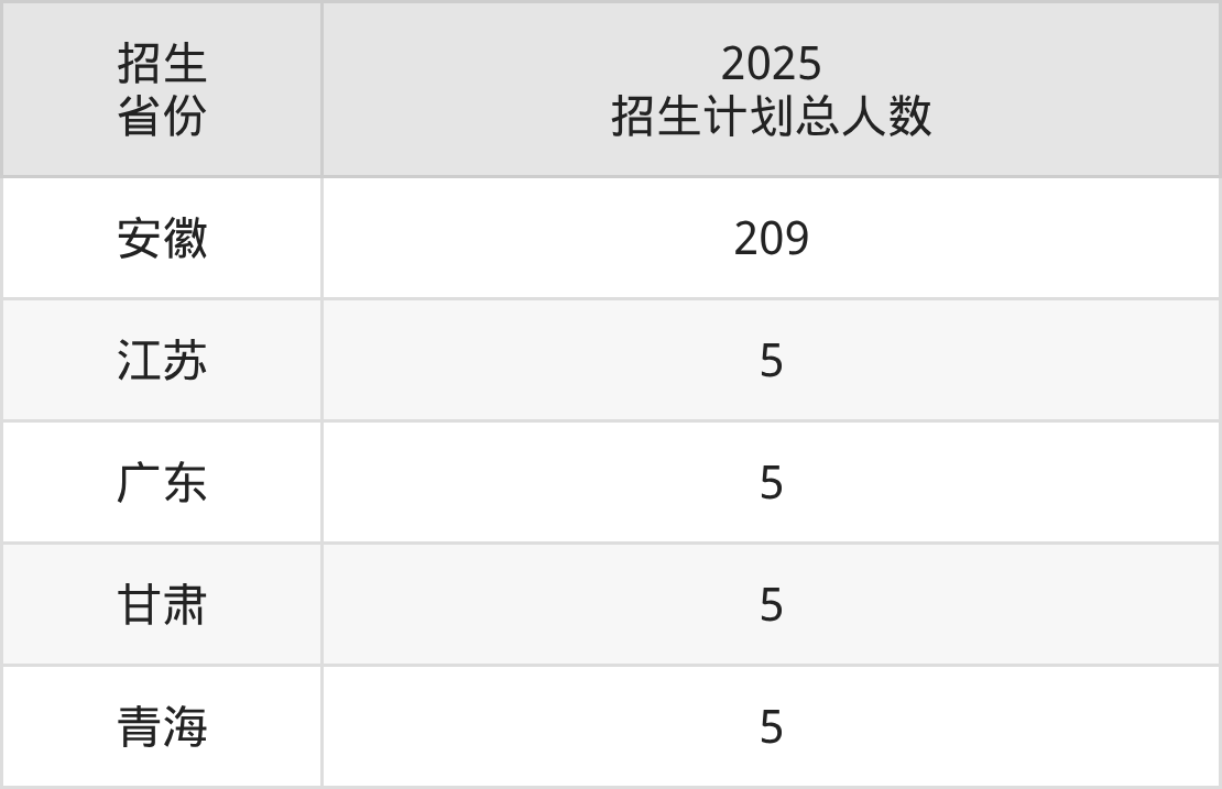 2025年安徽电气工程职业技术学院面向全国5个省市开展专科招生;招生专业共8个,招生人数共229人。2025年在安徽省招生计划总人数是209人,其中,安徽电气工程职业技术学院在安徽省招生人数最多的是发电厂及电力系统。安徽电气工程职业技术学院在各省具体招生人数情况如下表。