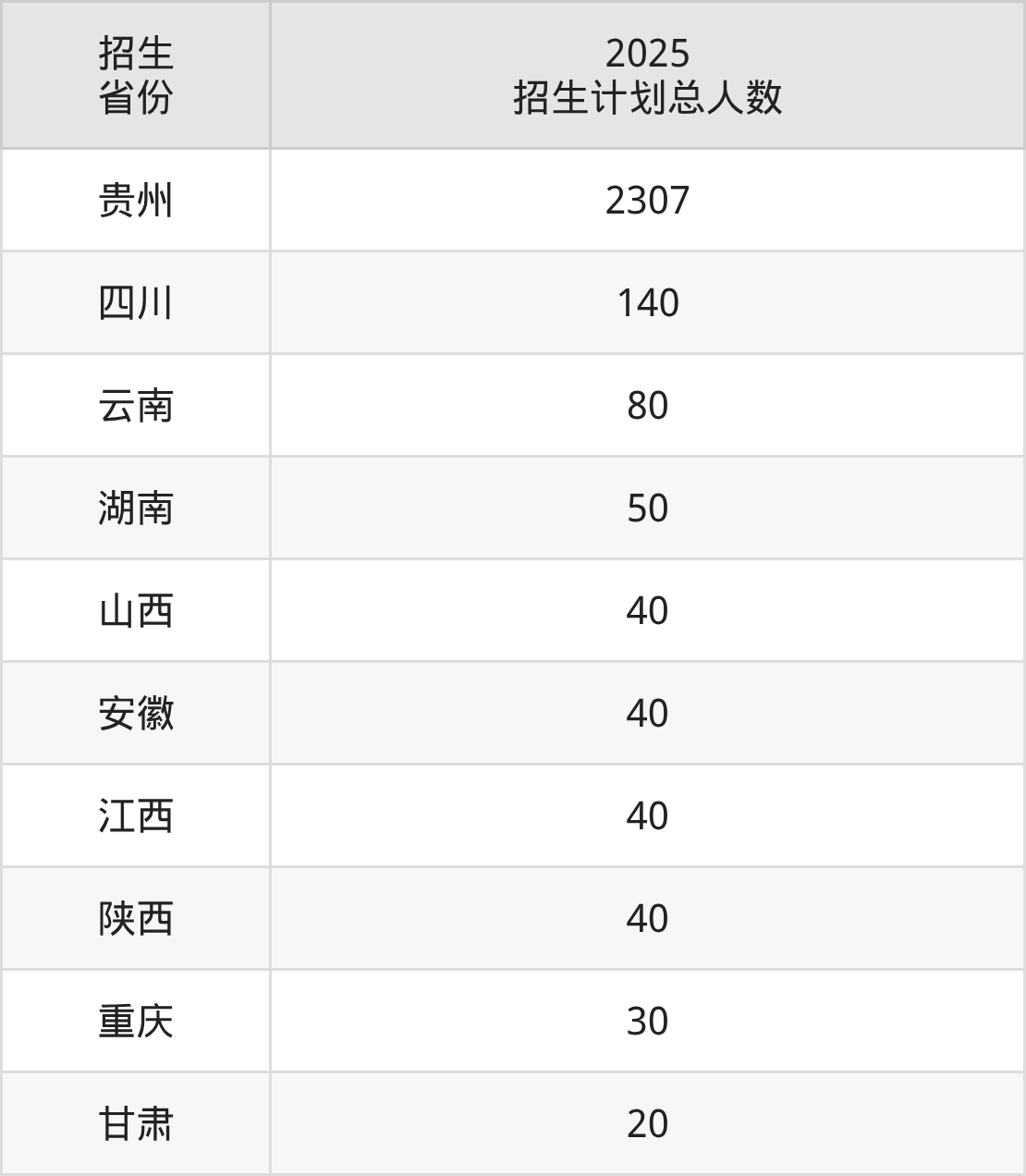 2025年毕节职业技术学院面向全国10个省市开展专科招生;招生专业共24个,招生人数共2787人。2025年在贵州省招生计划总人数是2307人,其中,毕节职业技术学院在贵州省招生人数最多的是工程造价。毕节职业技术学院在各省具体招生人数情况如下表。