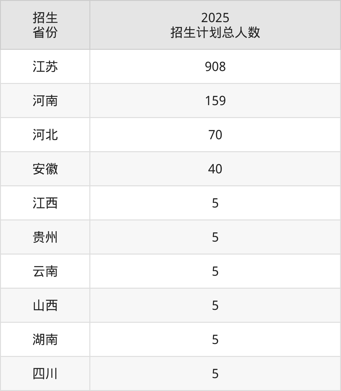 2025年无锡南洋职业技术学院面向全国10个省市开展专科招生;招生专业共36个,招生人数共1207人。2025年在江苏省招生计划总人数是908人,其中,无锡南洋职业技术学院在江苏省招生人数最多的是计算机应用技术。无锡南洋职业技术学院在各省具体招生人数情况如下表。