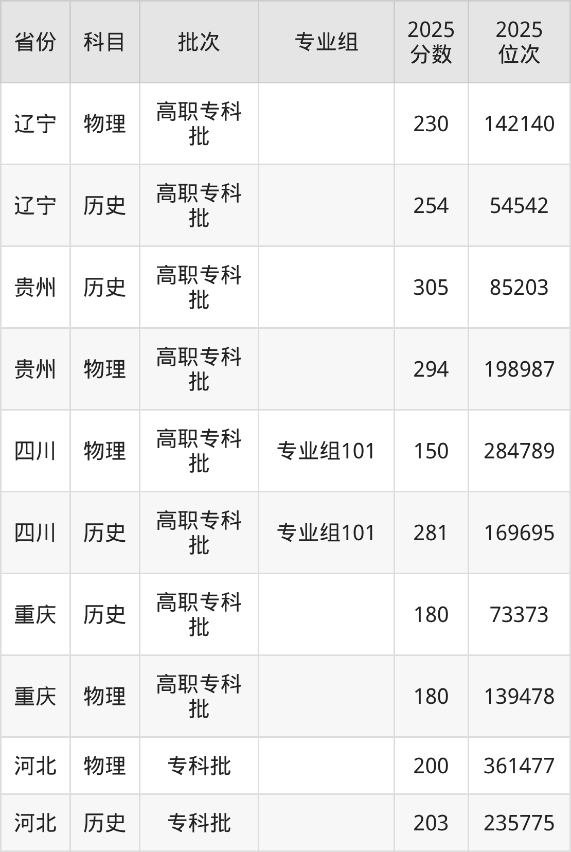 2025年重庆资源与环境保护职业学院全国录取分数线是150分到378分,录取最低在四川物理类(专业组101)、录取最高在河北物理类。各省各专业组最低分具有差异,详情如下: