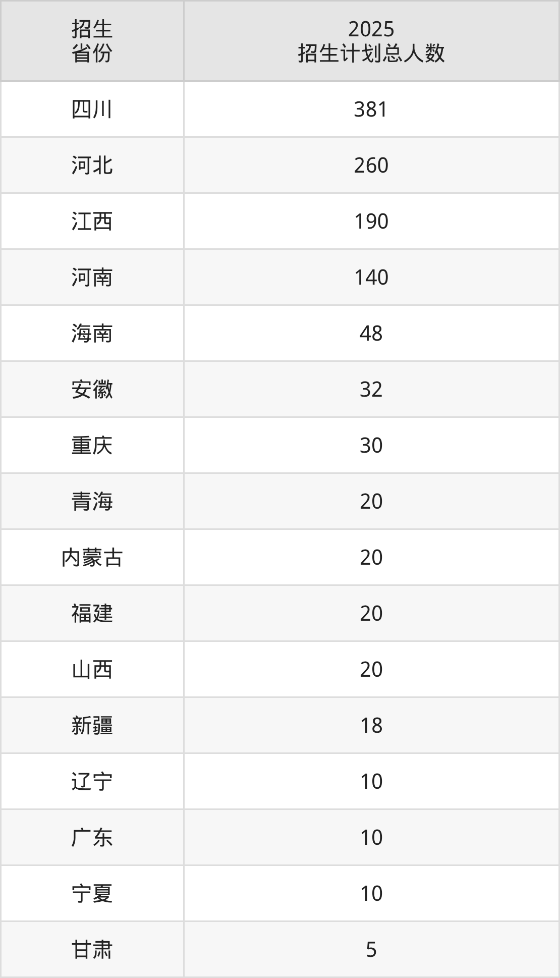 2025年四川汽车职业技术学院面向全国18个省市开展专科招生;招生专业共20个,招生人数共1221人。2025年在四川省招生计划总人数是381人,其中,四川汽车职业技术学院在四川省招生人数最多的是新能源汽车技术。四川汽车职业技术学院在各省具体招生人数情况如下表。