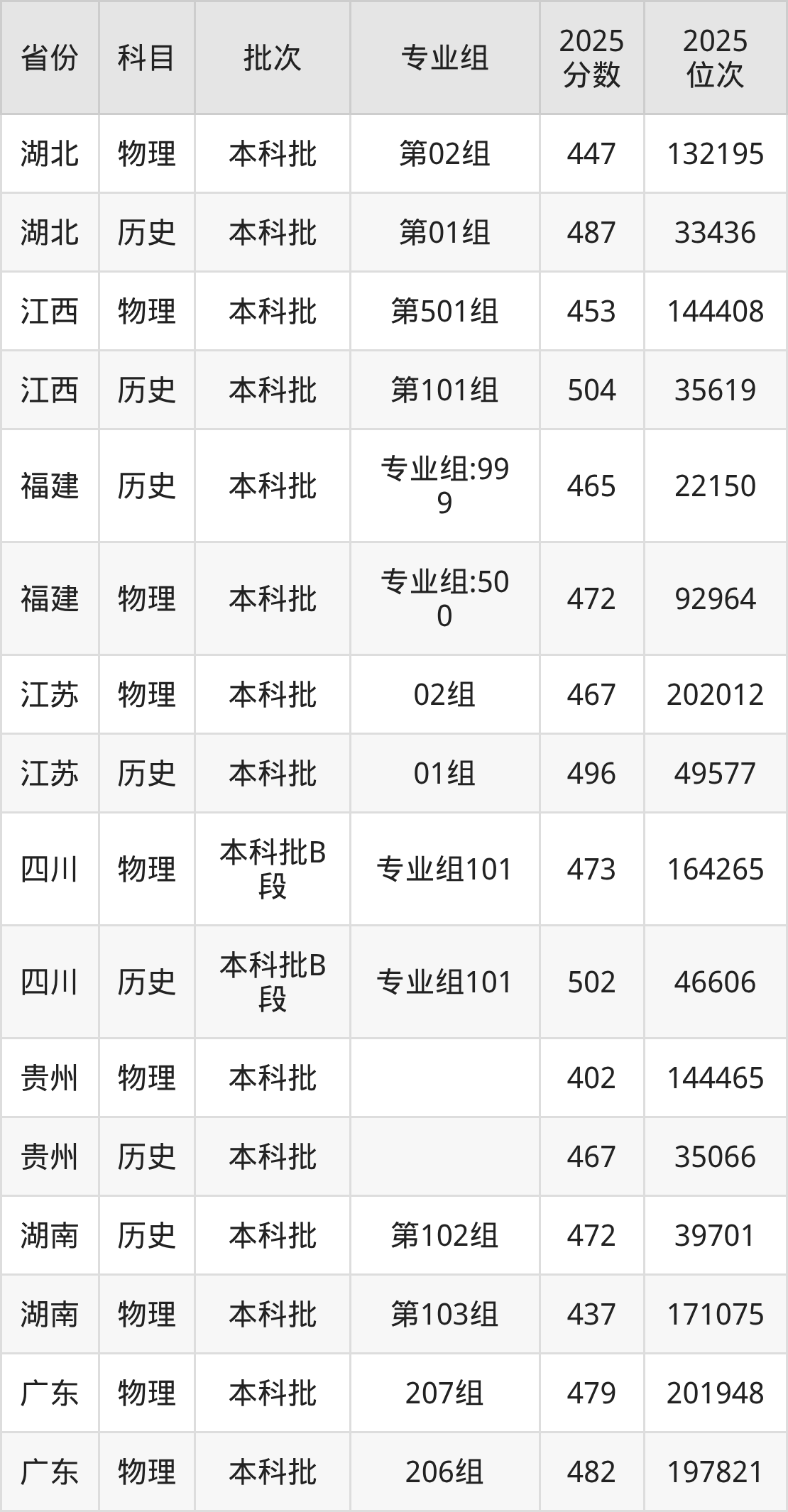 普通类本科物理类最低402分,本科历史类最低467分