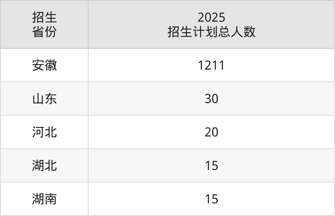 2025年铜陵职业技术学院面向全国5个省市开展专科招生;招生专业共38个,招生人数共1291人。2025年在安徽省招生计划总人数是1211人,其中,铜陵职业技术学院在安徽省招生人数最多的是护理。铜陵职业技术学院在各省具体招生人数情况如下表。