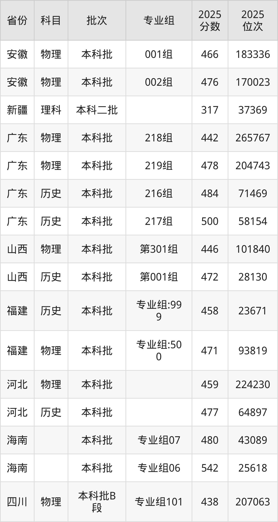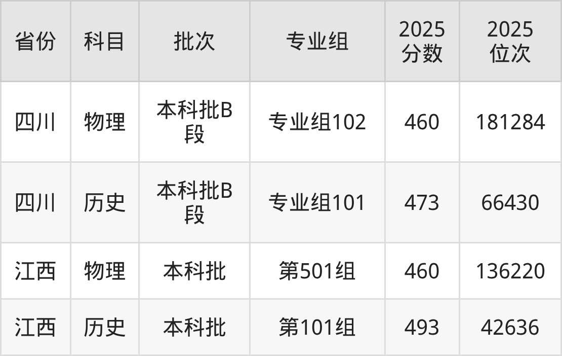2025年在本科物理类进行招生,各专业组分数线详情如下: