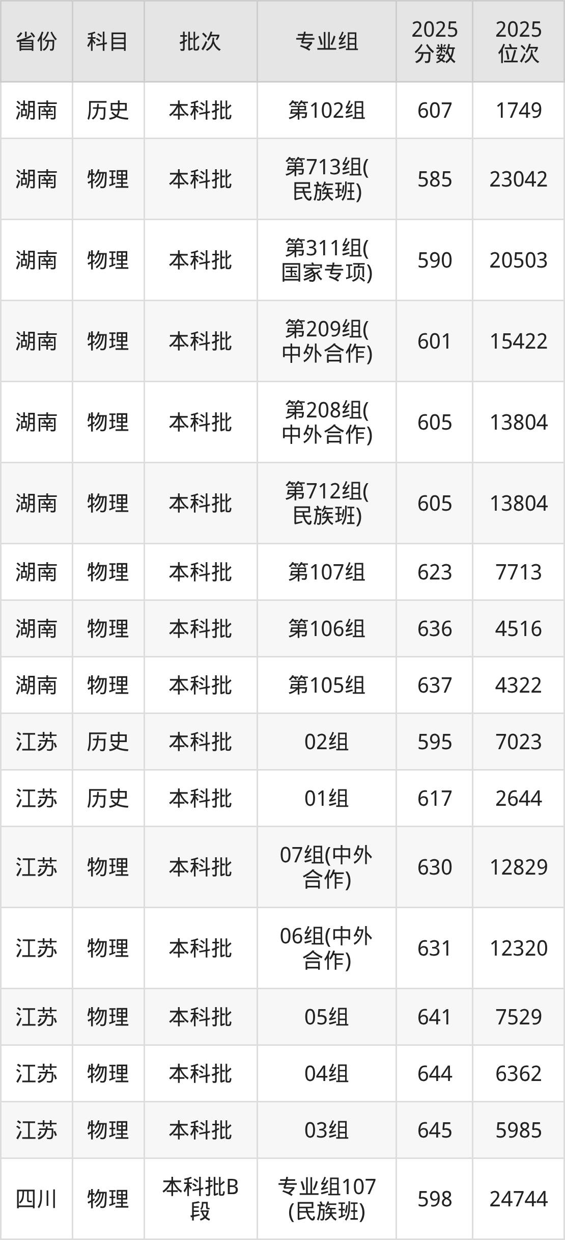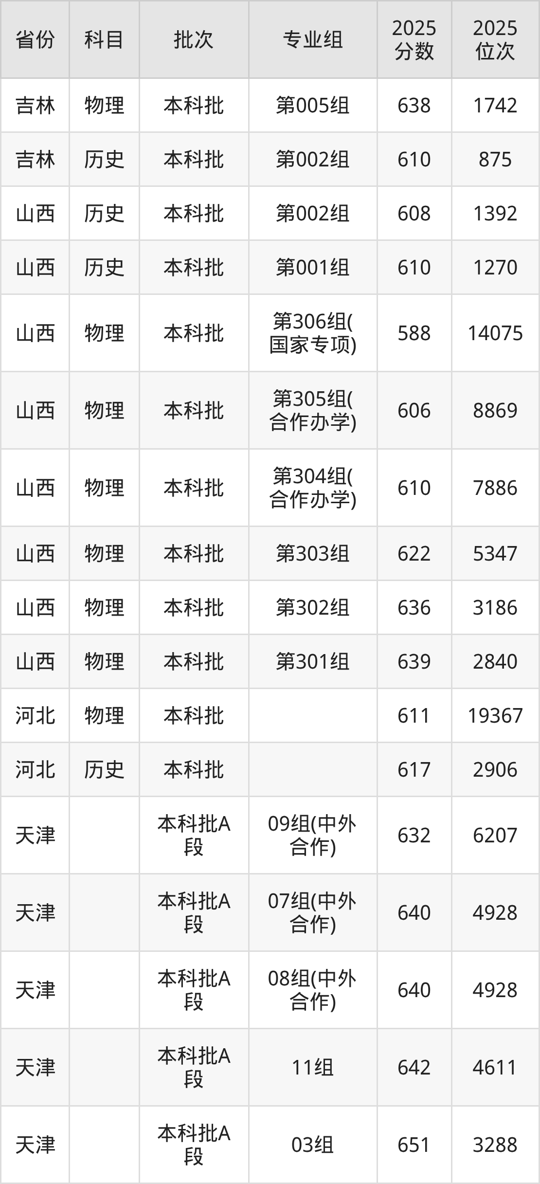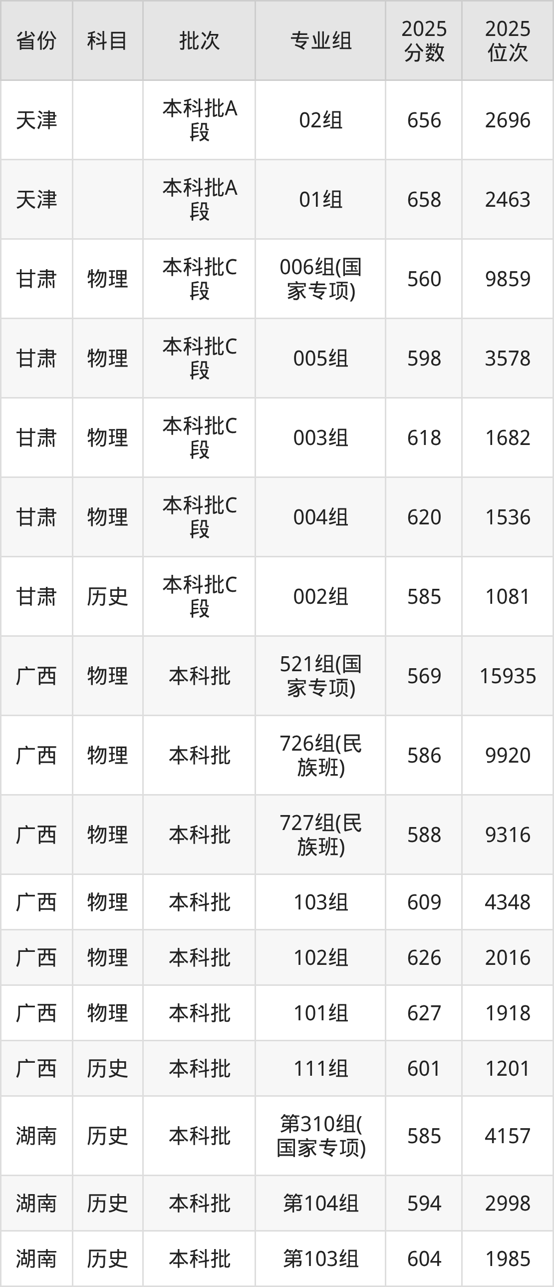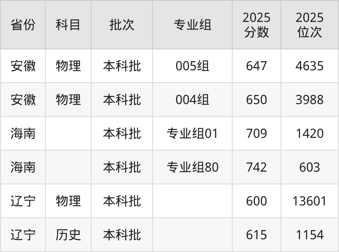 2025年在本科物理类进行招生,各专业组分数线详情如下:
