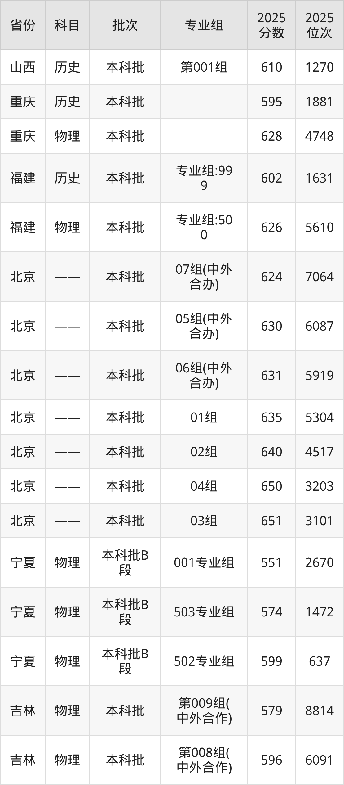 北京交通大学第09组(中外合作):2025年投档录取最低分为598分,录取最低位次为15137名。