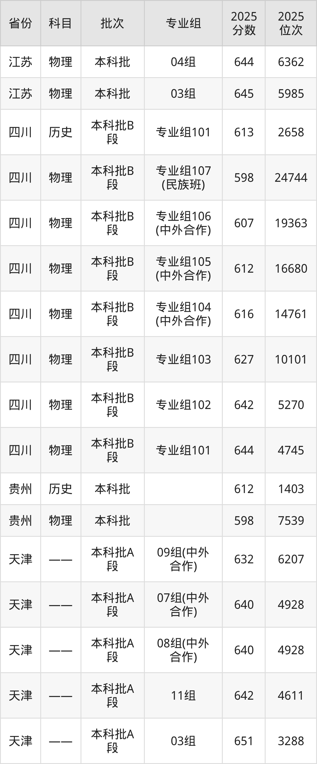 2025年投档录取最低分为598分,录取最低位次为7539名。