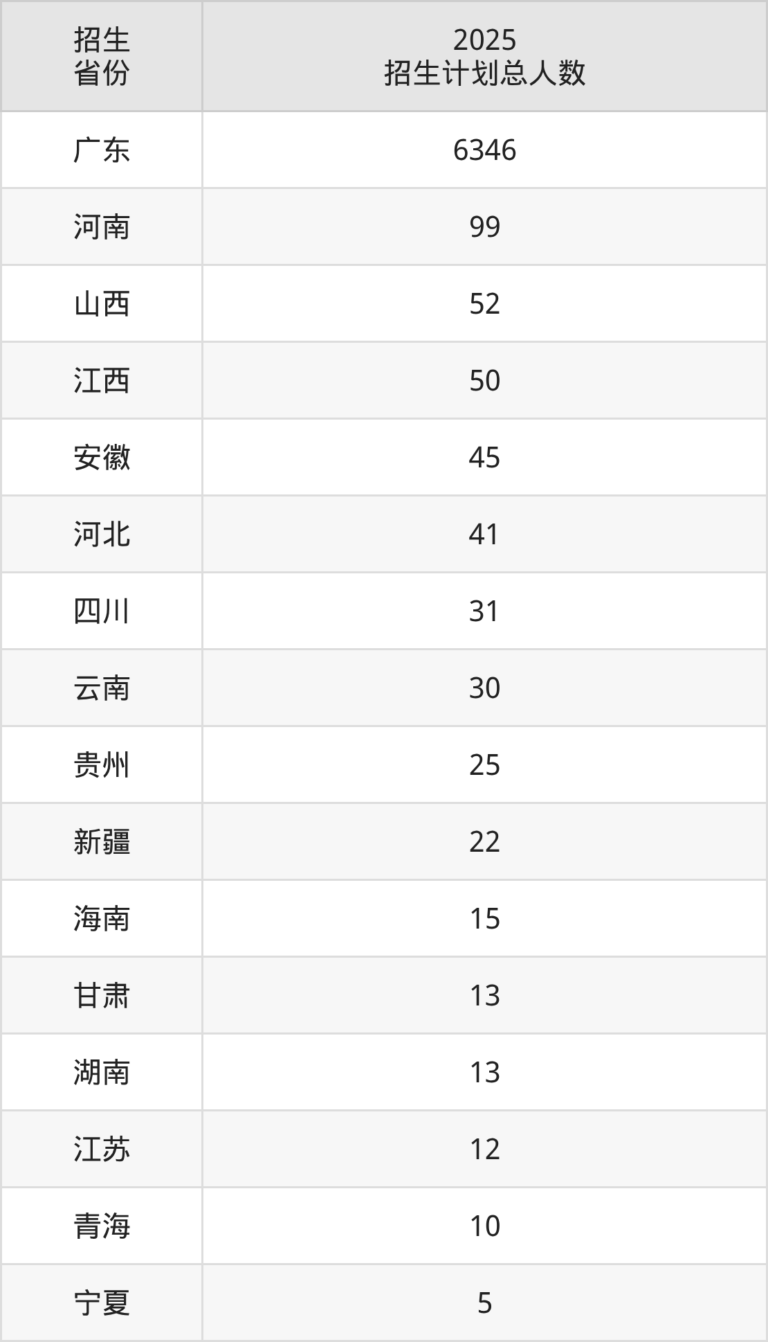 2025年广东酒店管理职业技术学院面向全国16个省市开展专科招生;招生专业共38个,招生人数共6809人。2025年在广东省招生计划总人数是6346人,其中,广东酒店管理职业技术学院在广东省招生人数最多的是护理。广东酒店管理职业技术学院在各省具体招生人数情况如下表。