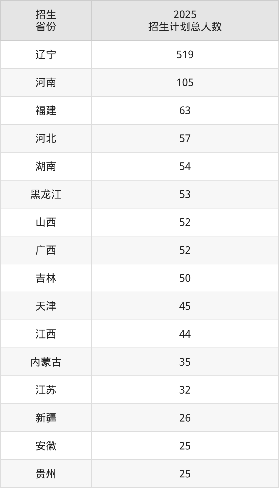 2025年大连医科大学中山学院面向全国23个省市开展本科招生;招生专业共23个,招生人数共1321人。2025年在辽宁省招生计划总人数是519人,其中,大连医科大学中山学院在辽宁省招生人数最多的是护理学。大连医科大学中山学院在各省具体招生人数情况如下表。