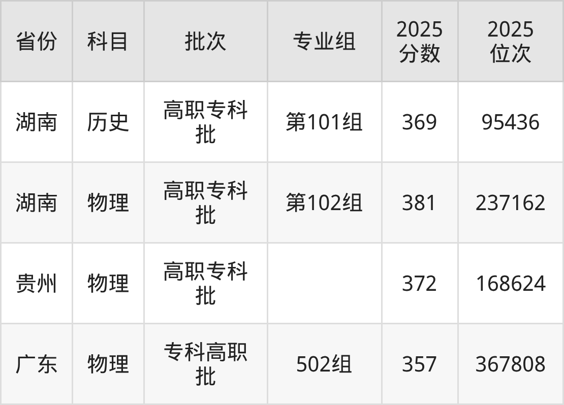 湖南电气职业技术学院第101组:2025年投档录取最低分为369分,录取最低位次为95436名。