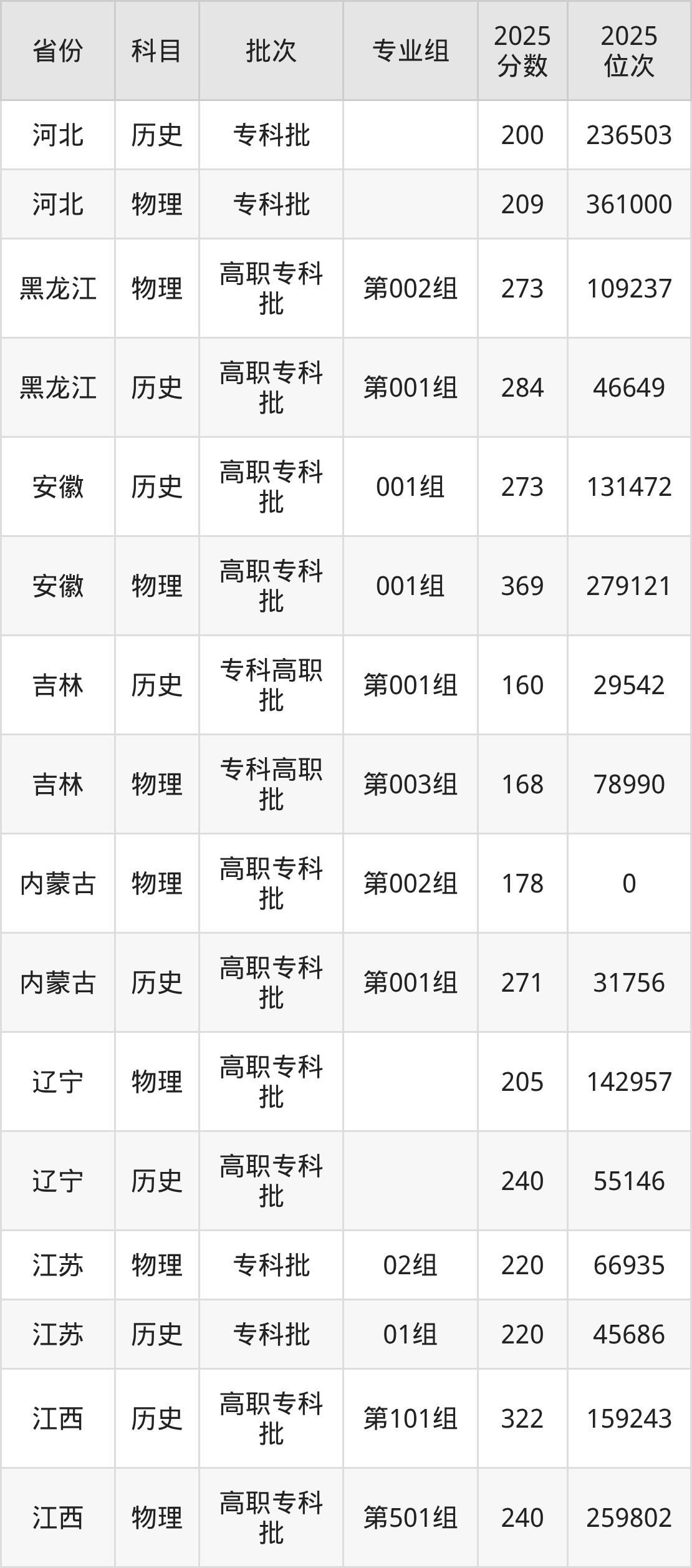 下面是2025年长春信息技术职业学院全国录取分数线一览表,请查阅。