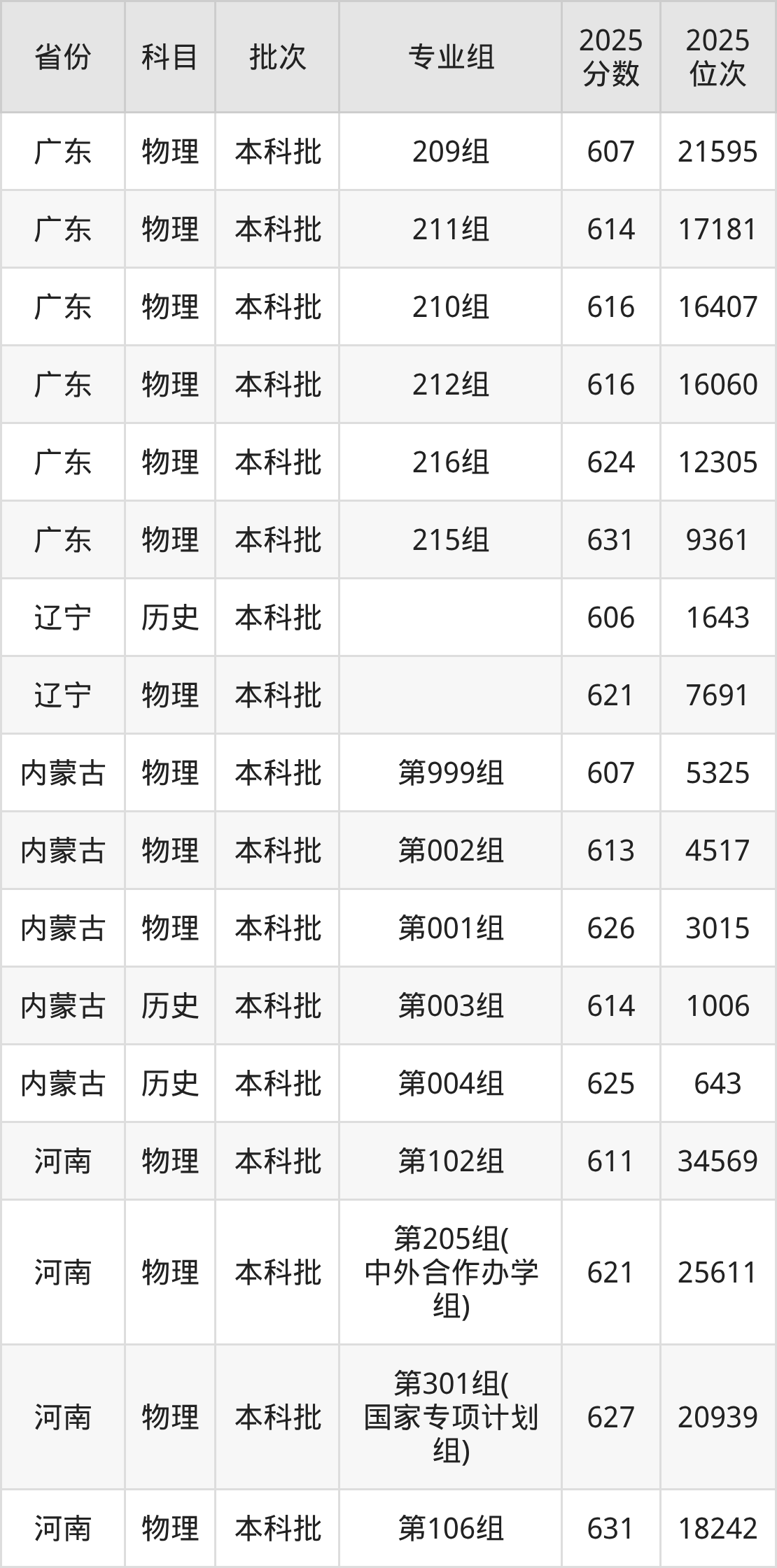 东北大学006组(中外合作办学):2025年投档录取最低分为615分,录取最低位次为17749名。