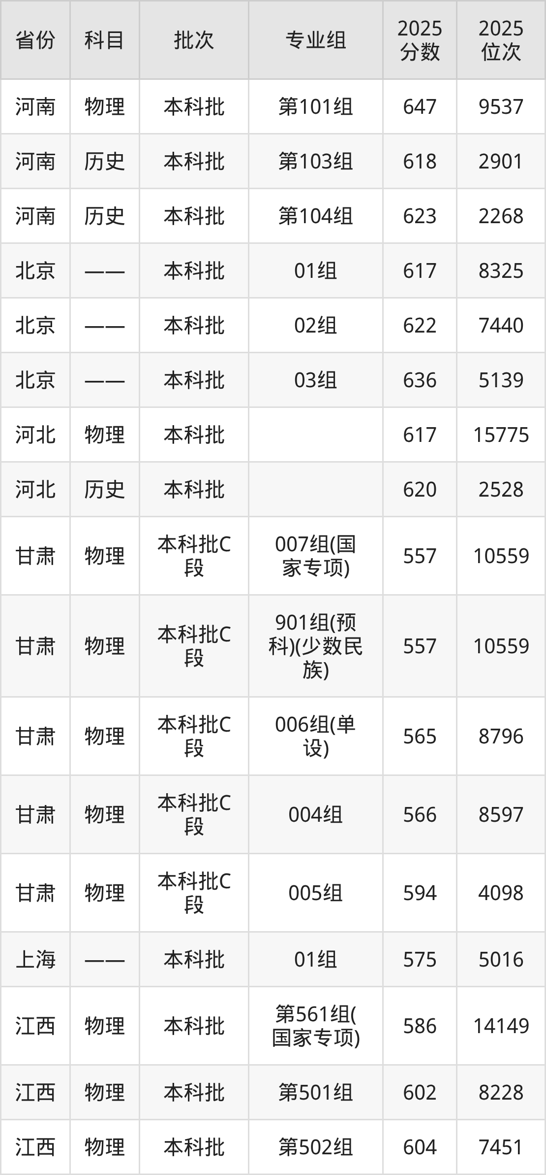 下面是2025年东北大学全国录取分数线一览表,请查阅。