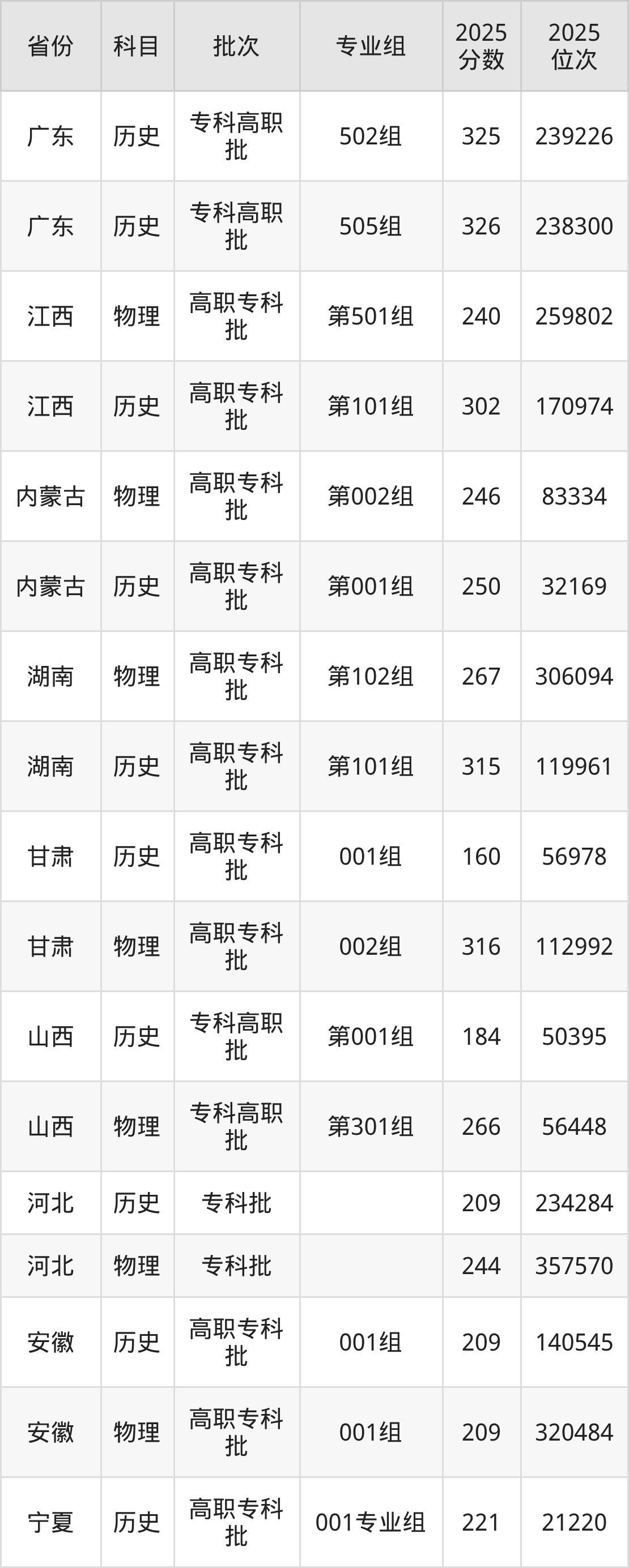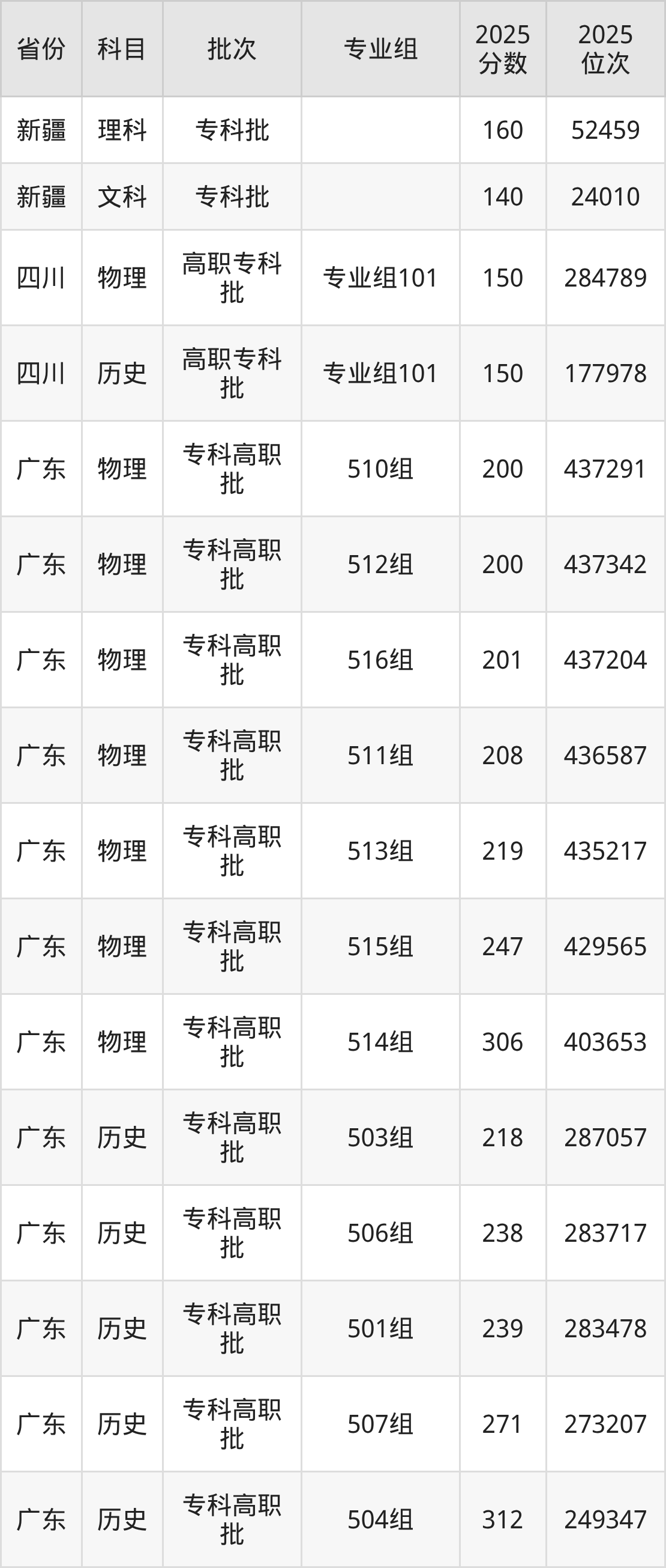 下面是2025年广东肇庆航空职业学院全国录取分数线一览表,请查阅。