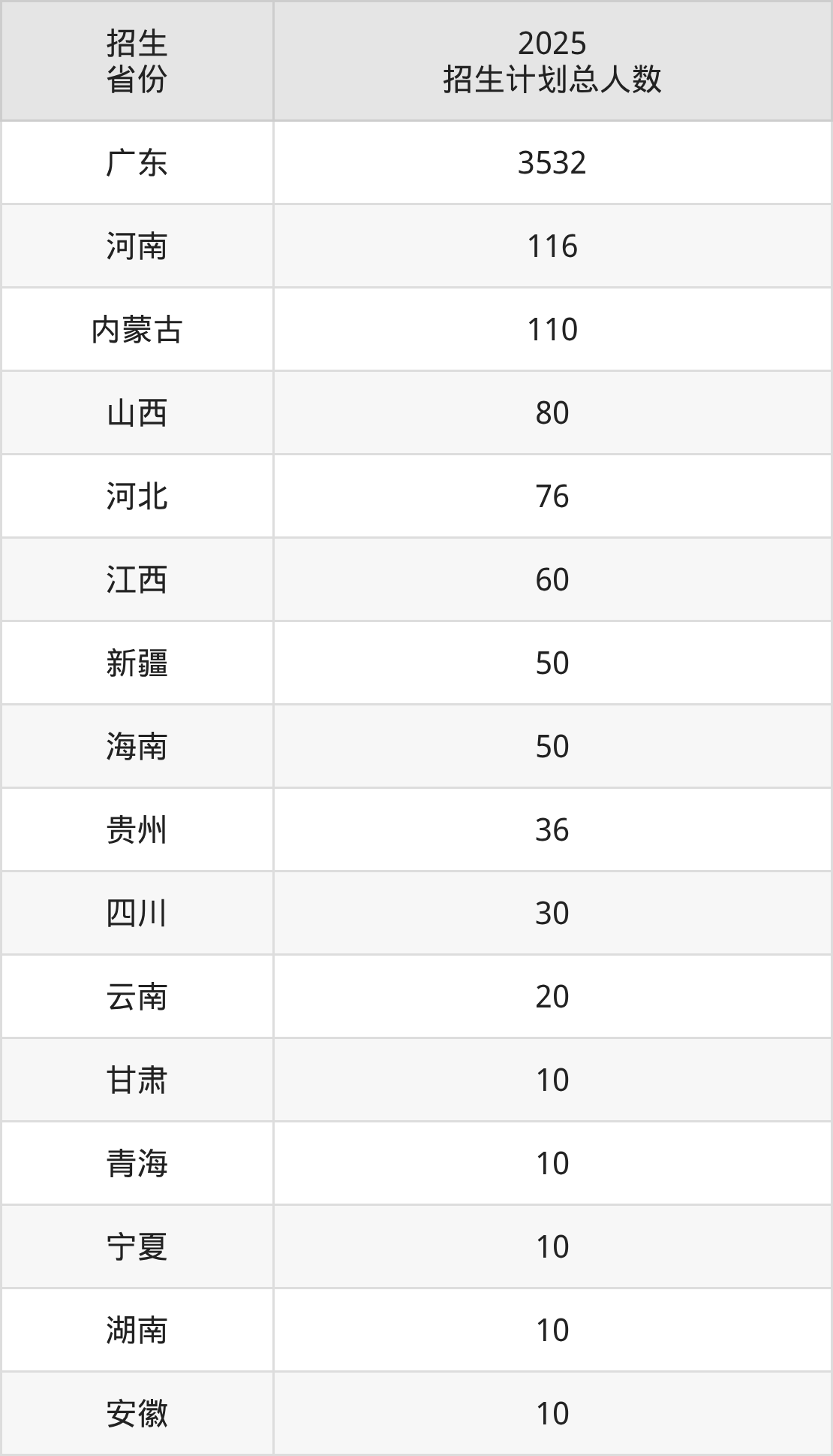 2025年广东肇庆航空职业学院面向全国16个省市开展专科招生;招生专业共45个,招生人数共4210人。2025年在广东省招生计划总人数是3532人,其中,广东肇庆航空职业学院在广东省招生人数最多的是无人机应用技术。广东肇庆航空职业学院在各省具体招生人数情况如下表。