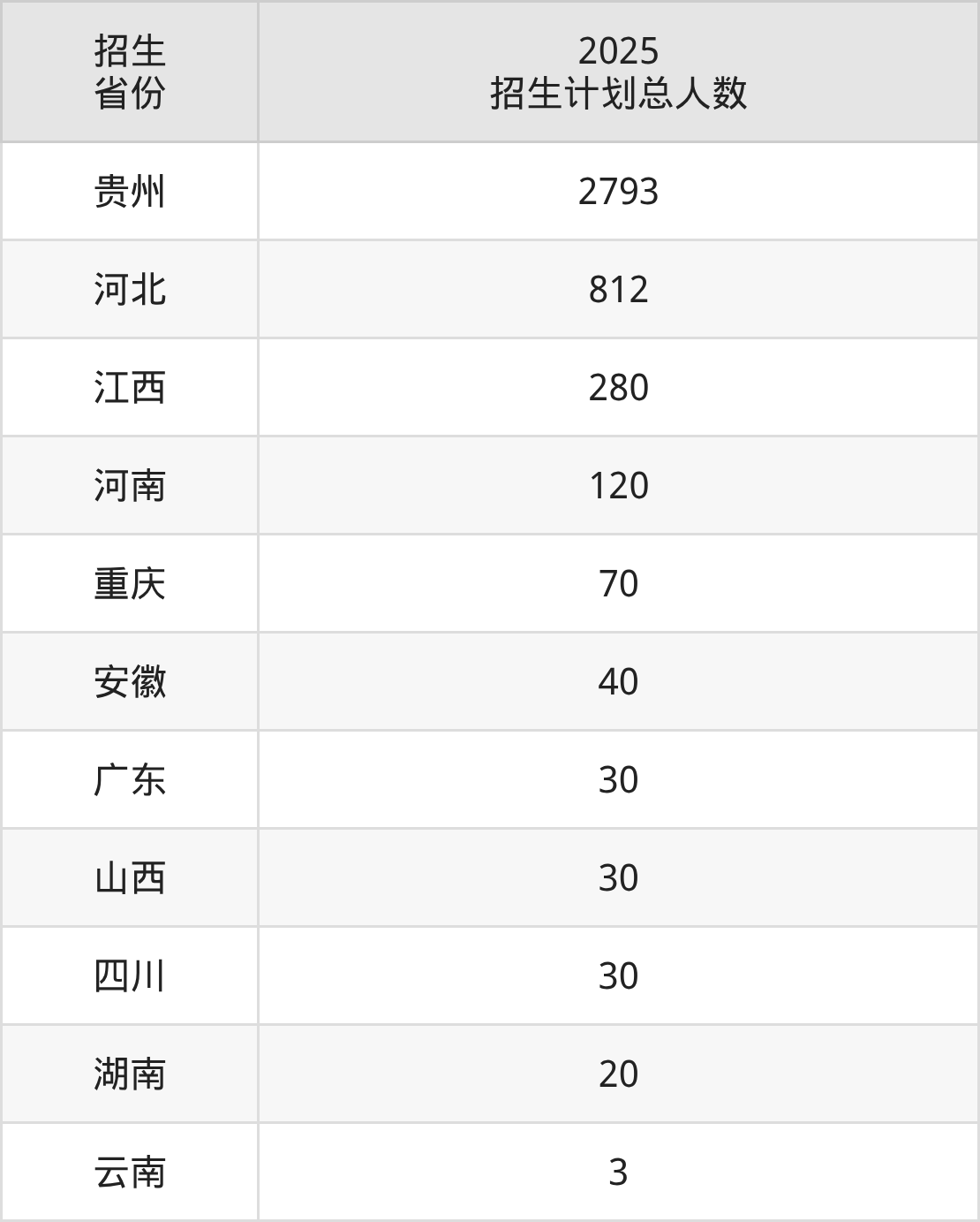 2025年贵州城市职业学院面向全国11个省市开展专科招生;招生专业共24个,招生人数共4228人。2025年在贵州省招生计划总人数是2793人,其中,贵州城市职业学院在贵州省招生人数最多的是护理。贵州城市职业学院在各省具体招生人数情况如下表。