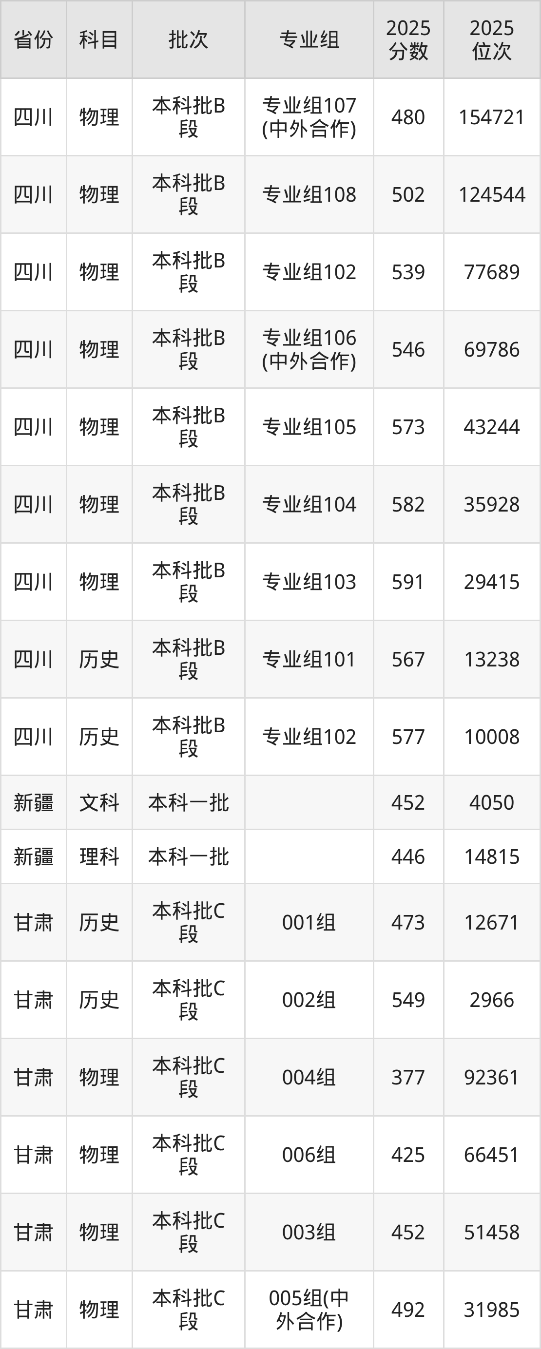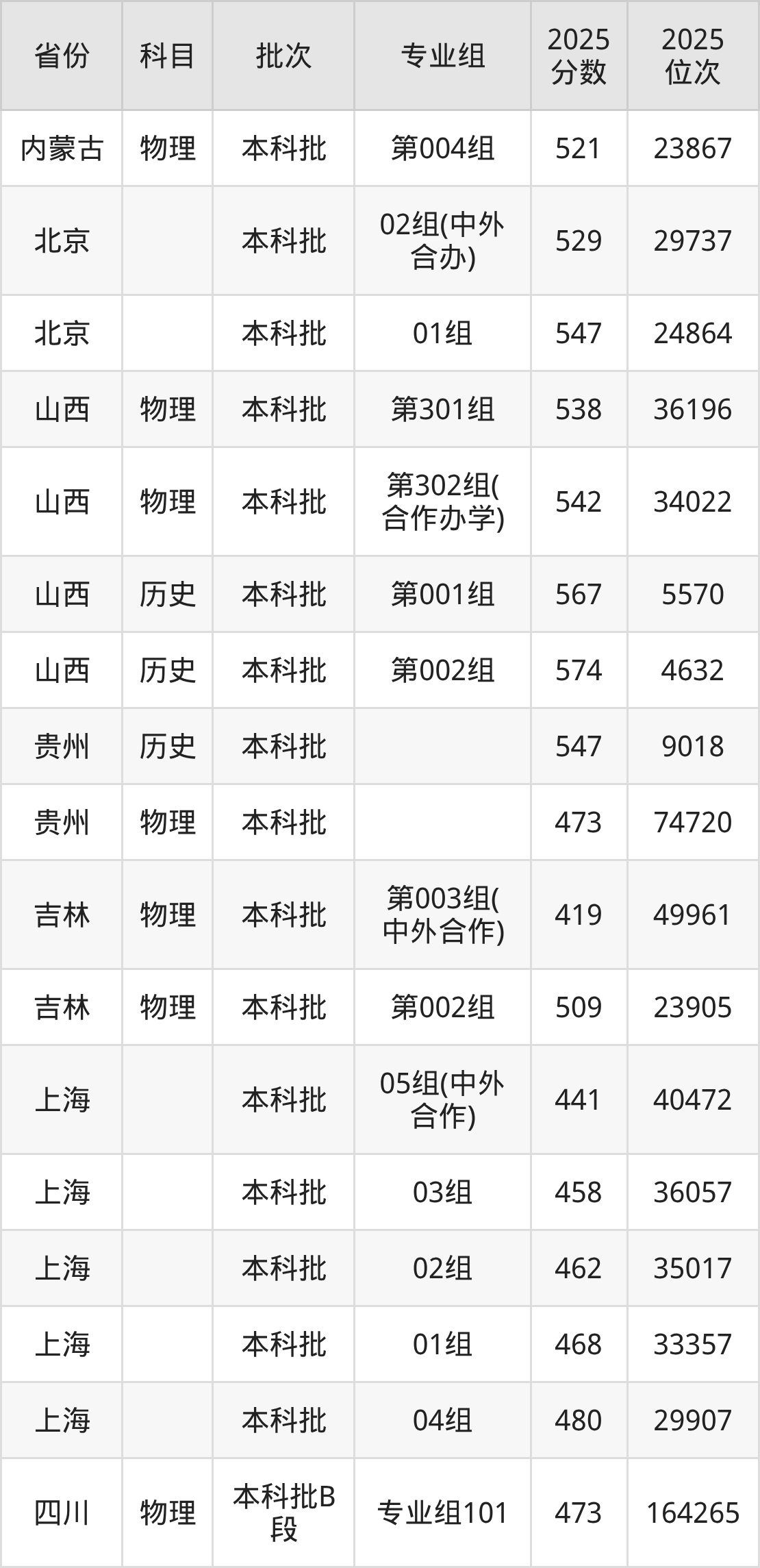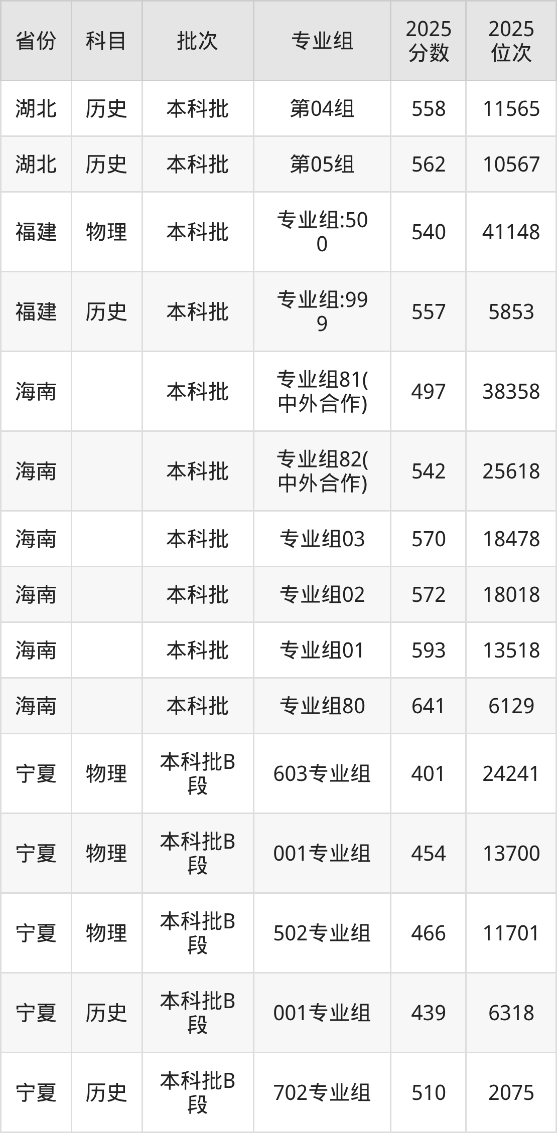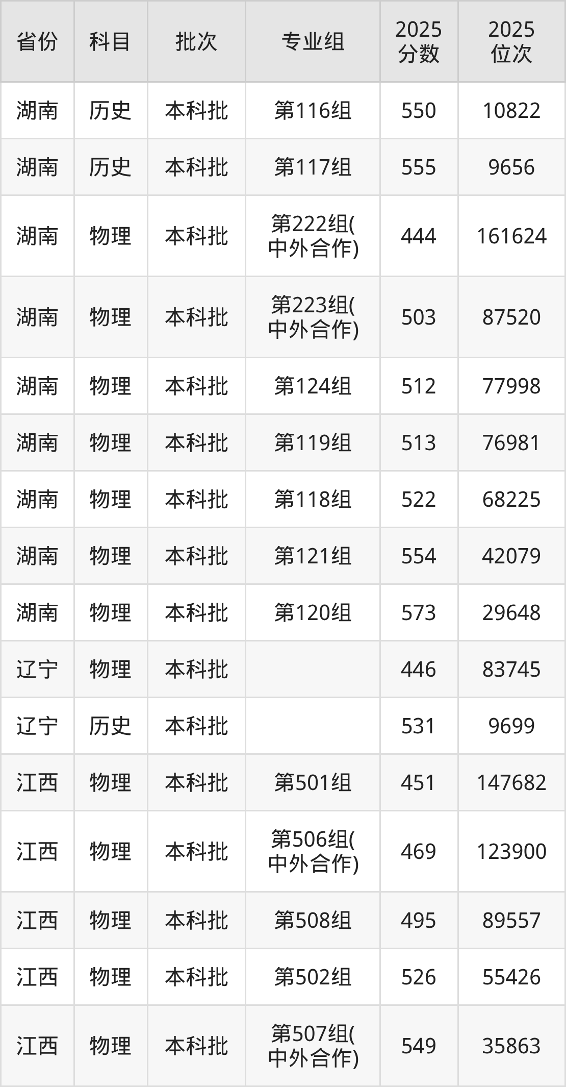2025年在本科物理类进行招生,各专业组分数线详情如下:
