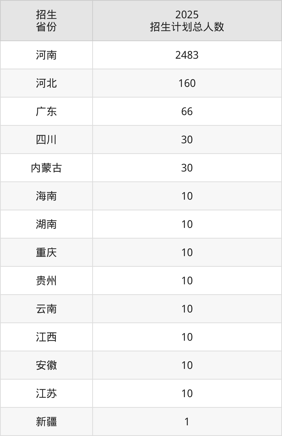 2025年濮阳职业技术学院面向全国14个省市开展专科招生;招生专业共47个,招生人数共2850人。2025年在河南省招生计划总人数是2483人,其中,濮阳职业技术学院在河南省招生人数最多的是小学教育。濮阳职业技术学院在各省具体招生人数情况如下表。