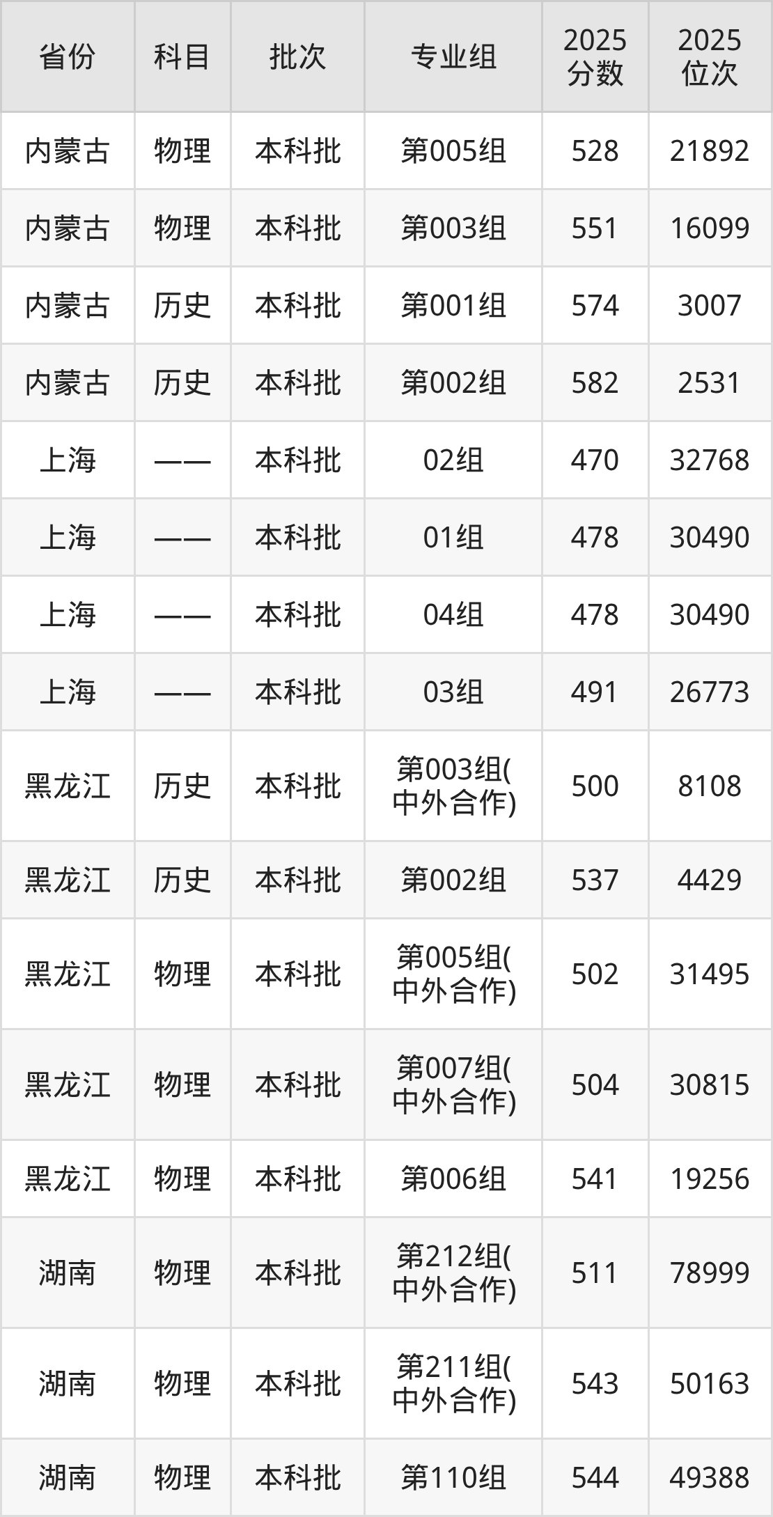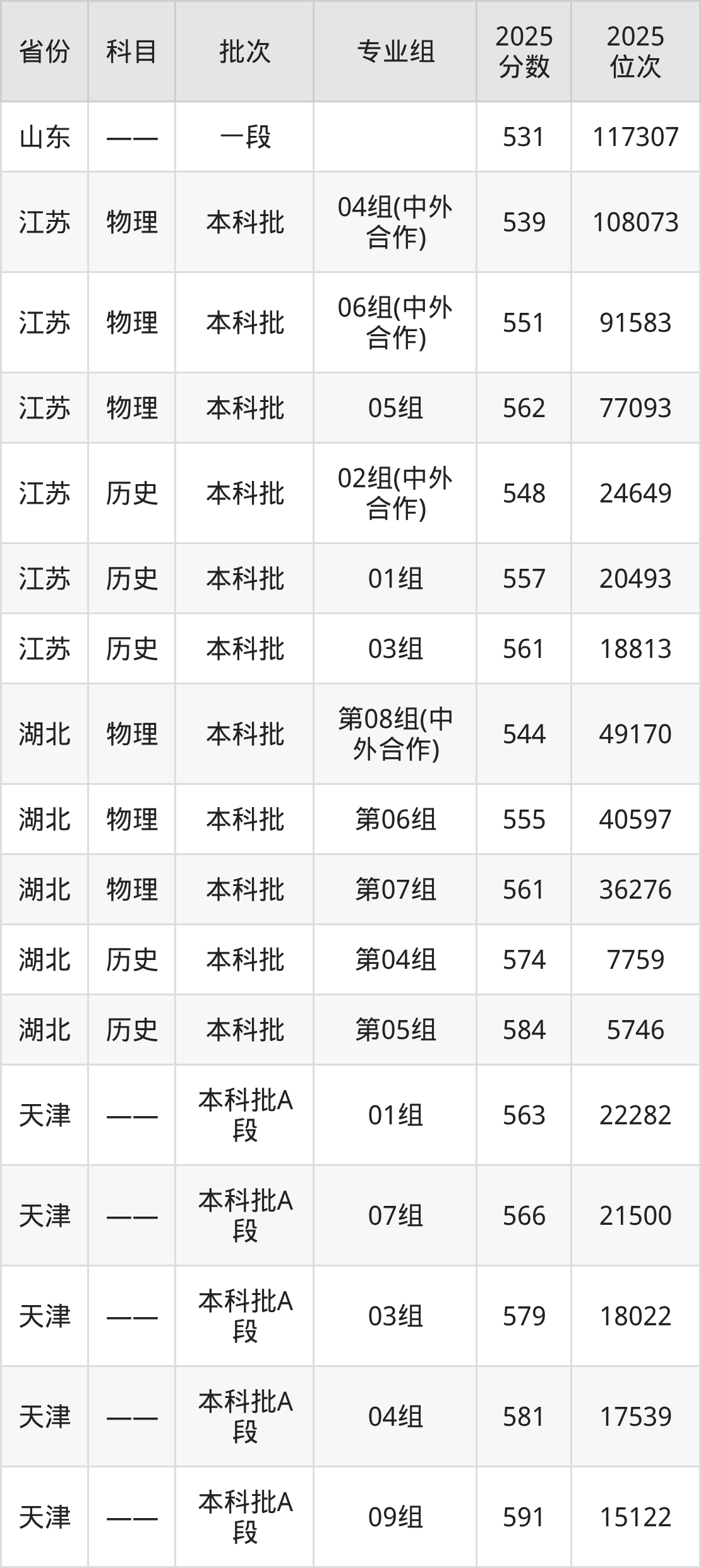 普通类本科物理类最低537分,本科历史类最低542分