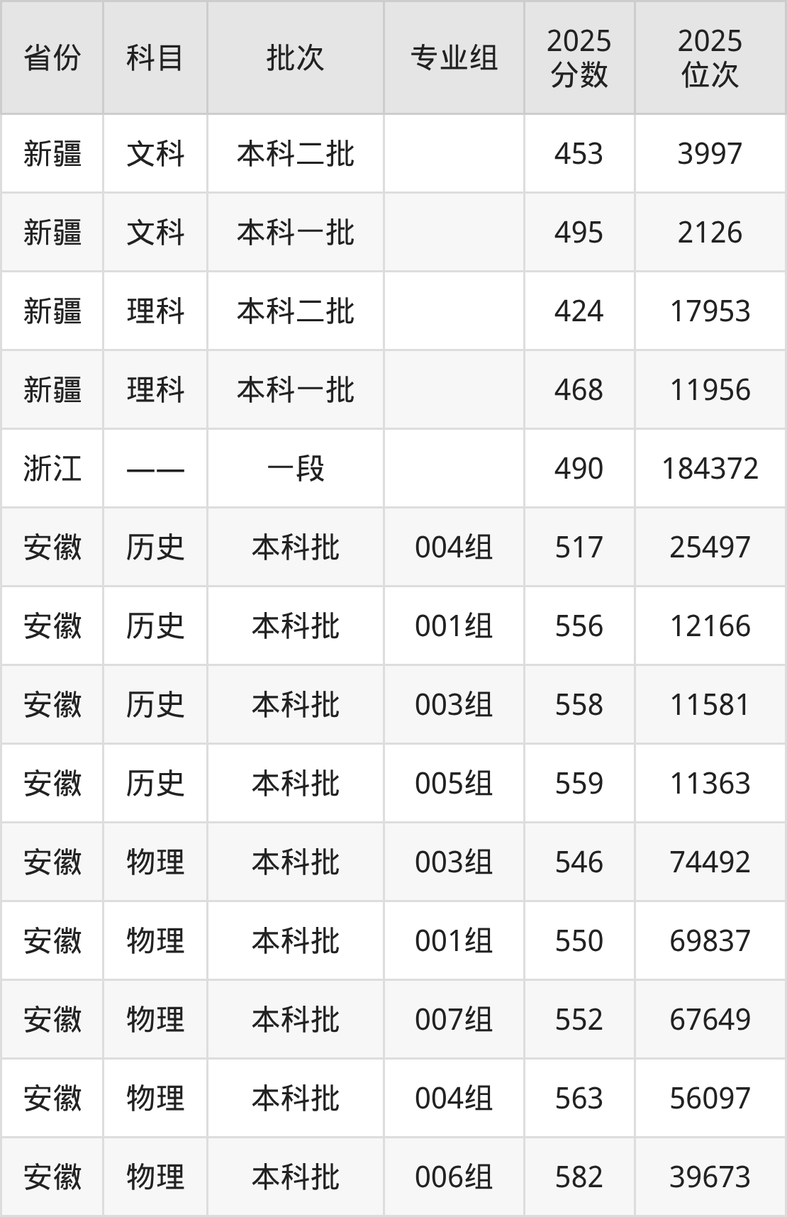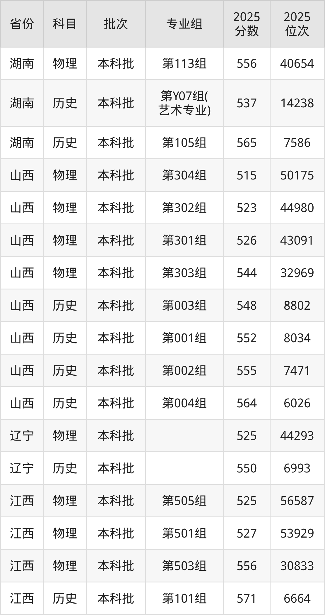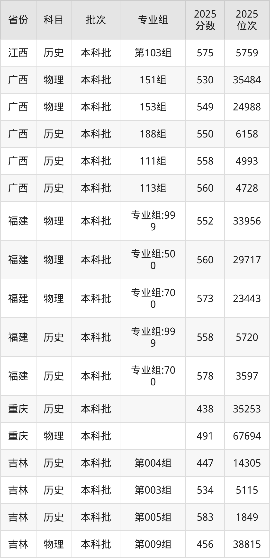 普通类本科物理类最低552分,本科历史类最低558分
