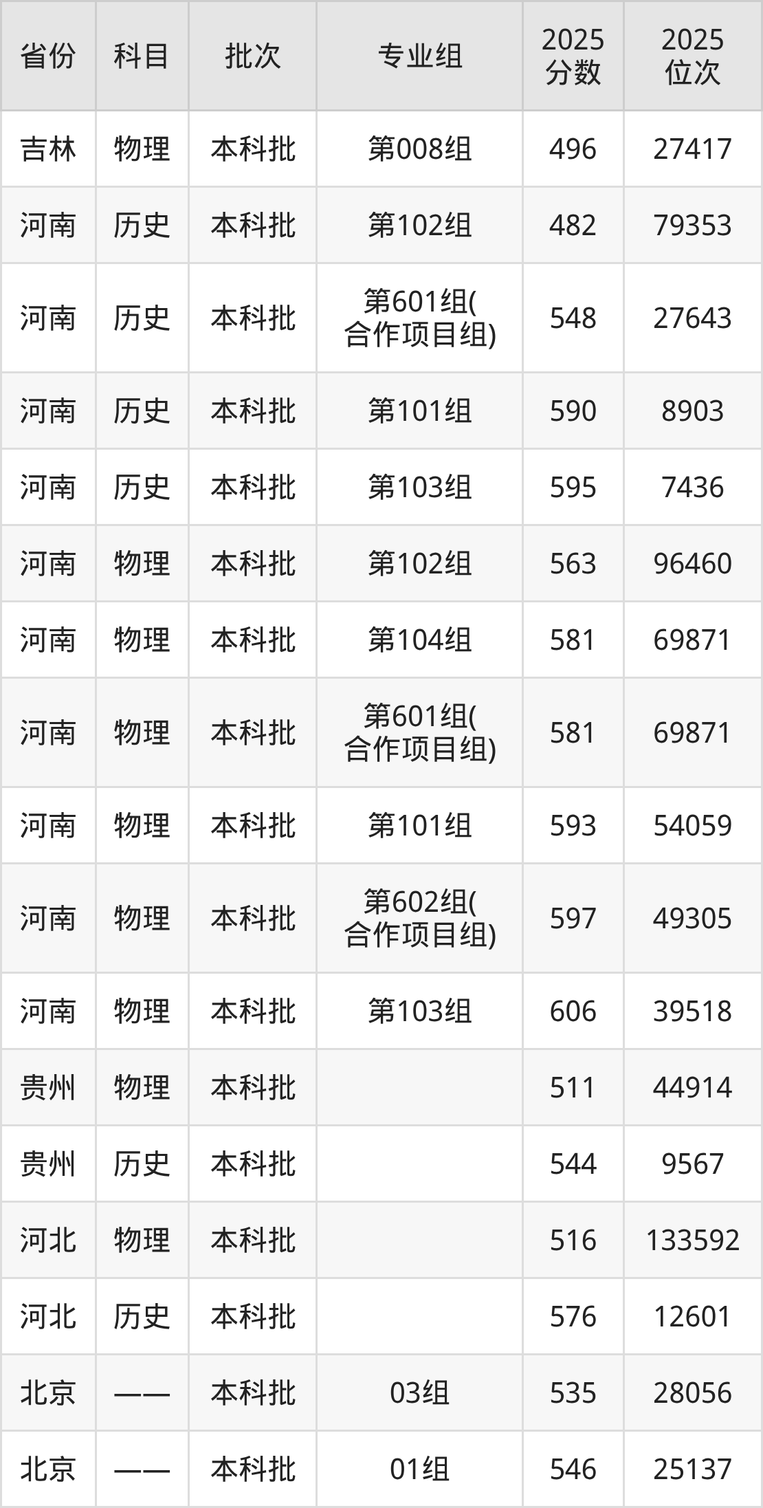 2025年投档录取最低分为576分,录取最低位次为12601名。