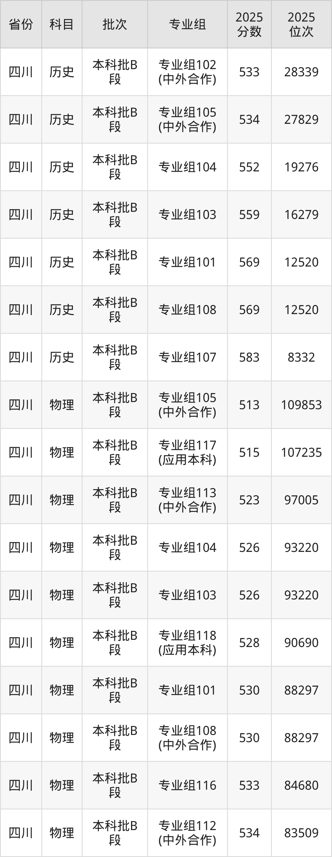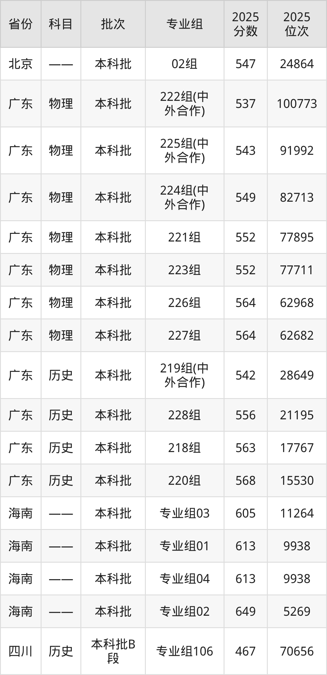 成都大学222组(中外合作):2025年投档录取最低分为537分,录取最低位次为100773名。