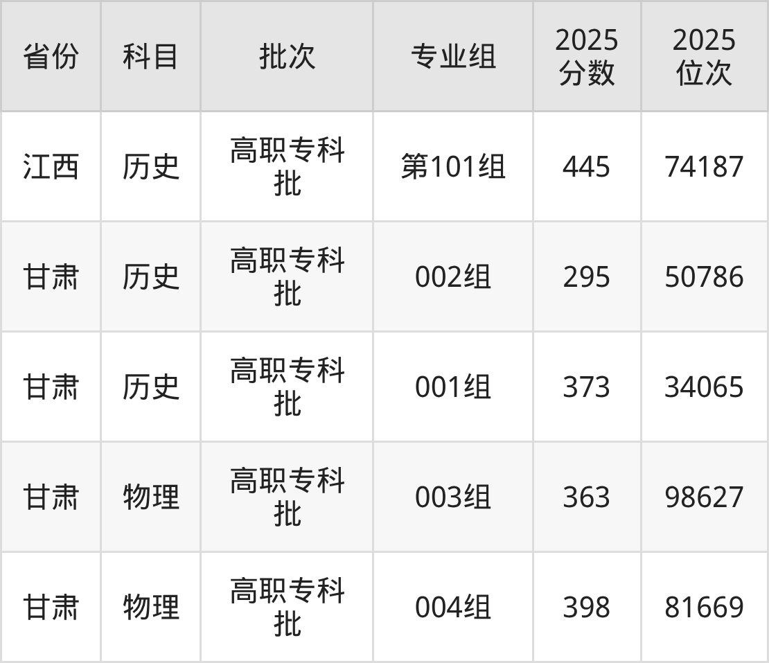 赣南卫生健康职业学院001专业组:2025年投档录取最低分为373分,录取最低位次为34065名。