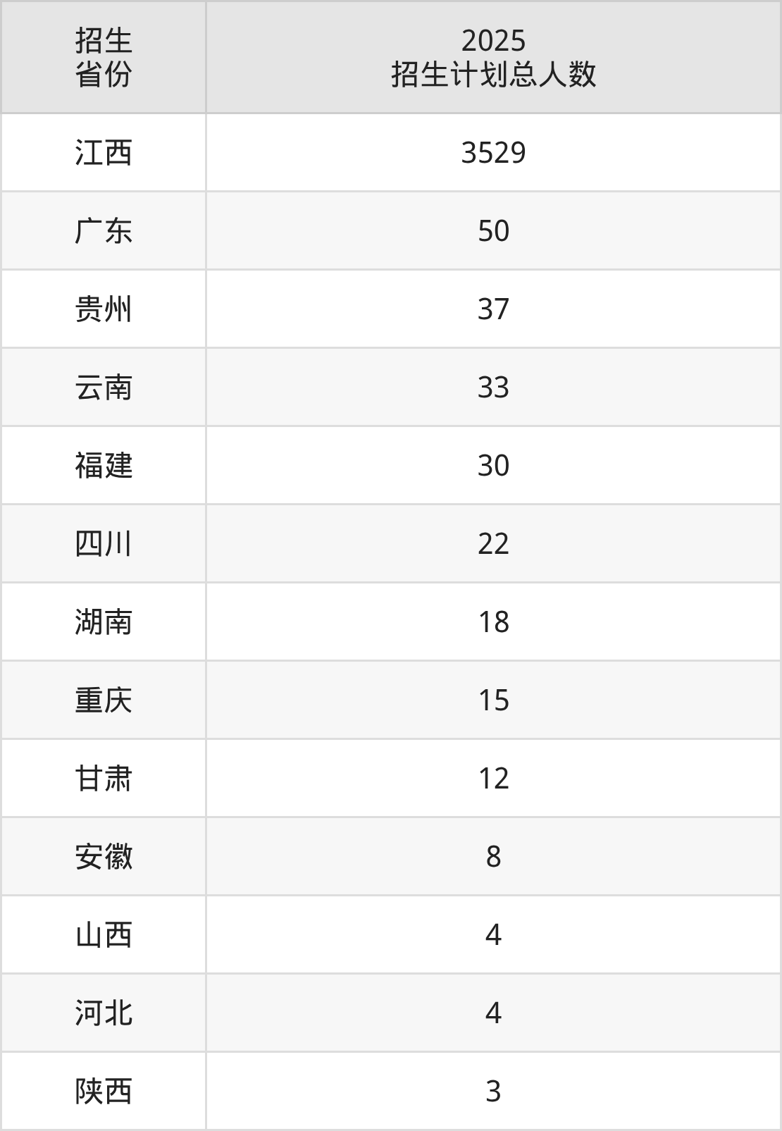 2025年赣南卫生健康职业学院面向全国13个省市开展专科招生;招生专业共25个,招生人数共3765人。
