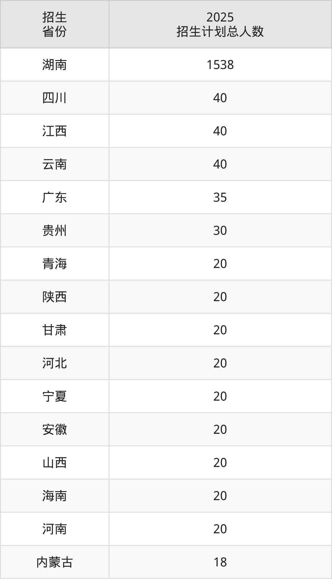 2025年湖南工程职业技术学院面向全国22个省市开展专科招生;招生专业共32个,招生人数共1992人。2025年在湖南省招生计划总人数是1538人,其中,湖南工程职业技术学院在湖南省招生人数最多的是人工智能技术应用。湖南工程职业技术学院在各省具体招生人数情况如下表。