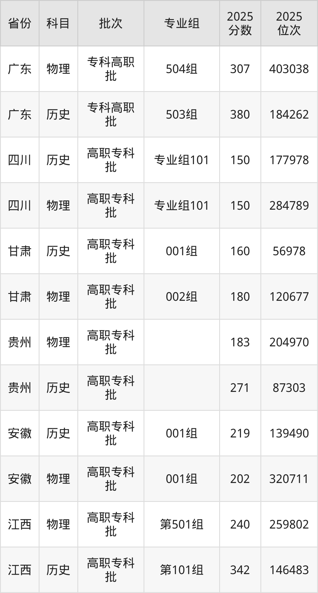 2025年福州英华职业学院全国录取分数线是150分到380分,录取最低在四川历史类(专业组101)、录取最高在广东历史类(503组)。各省各专业组最低分具有差异,详情如下: