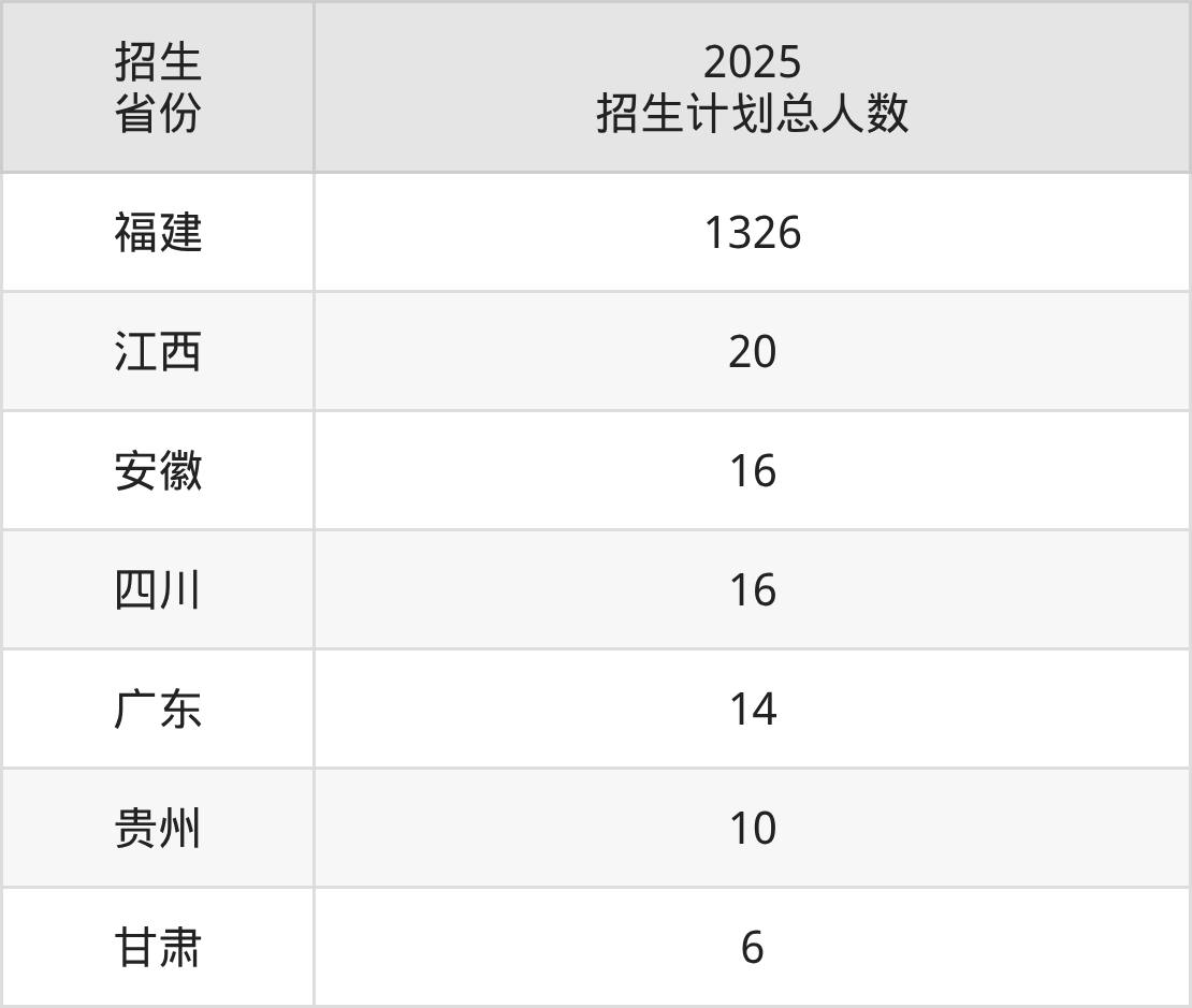 2025年福州英华职业学院面向全国7个省市开展专科招生;招生专业共30个,招生人数共1408人。2025年在福建省招生计划总人数是1326人,其中,福州英华职业学院在福建省招生人数最多的是建筑室内设计。福州英华职业学院在各省具体招生人数情况如下表。