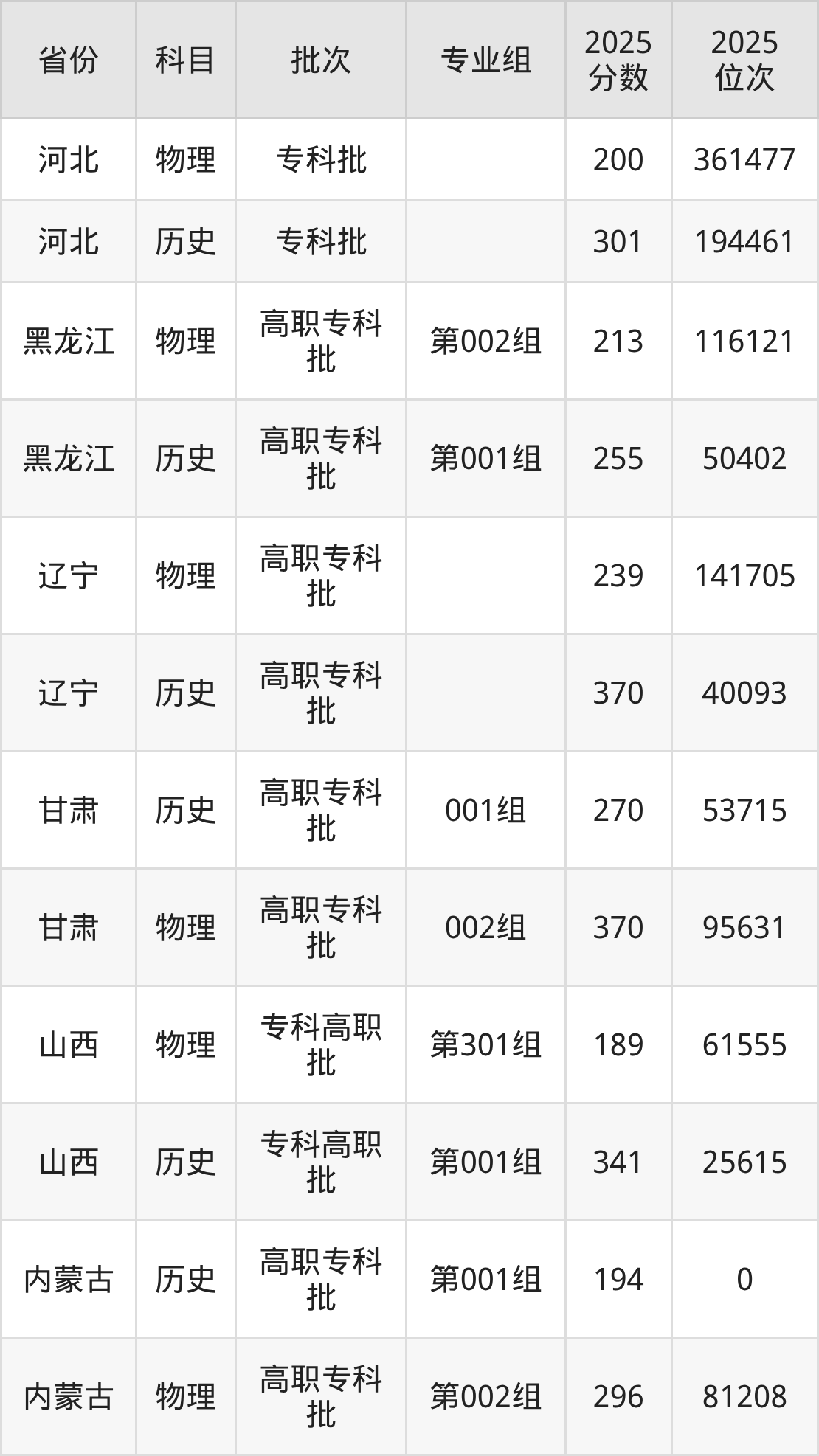 石家庄工程职业学院第001组:2025年投档录取最低分为341分,录取最低位次为25615名。