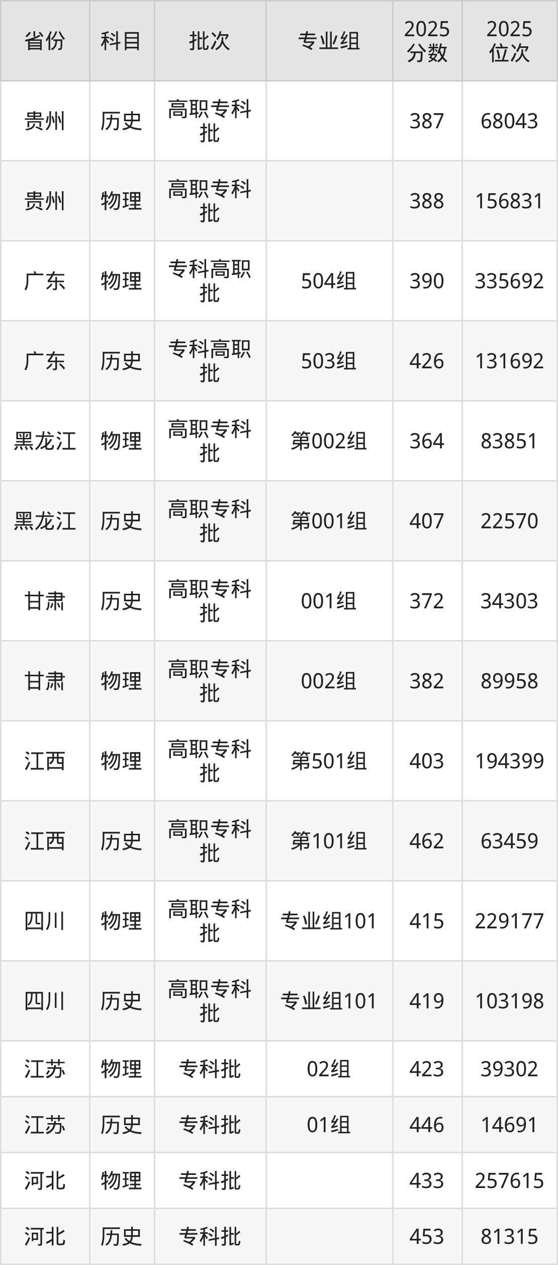 专科历史类投档录取最低453分,专科物理类投档录取最低433分