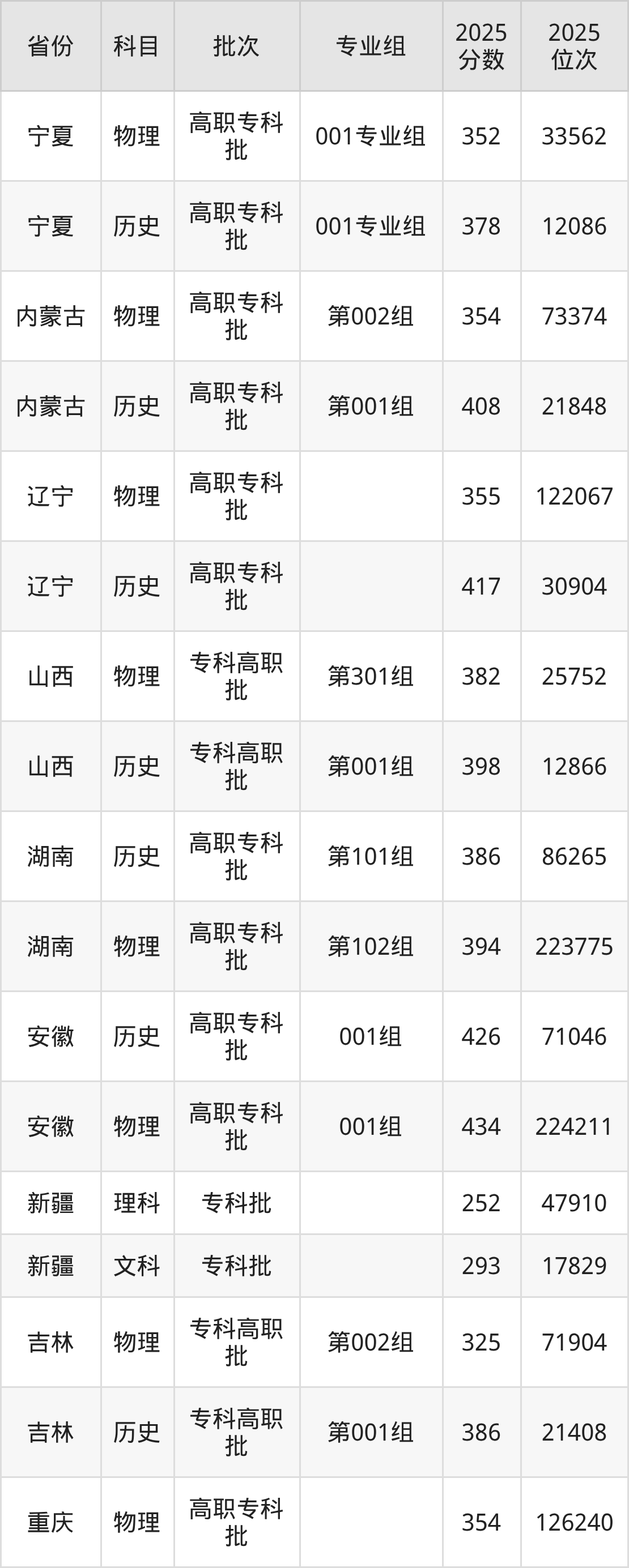 日照职业技术学院001专业组:2025年投档录取最低分为378分,录取最低位次为12086名。