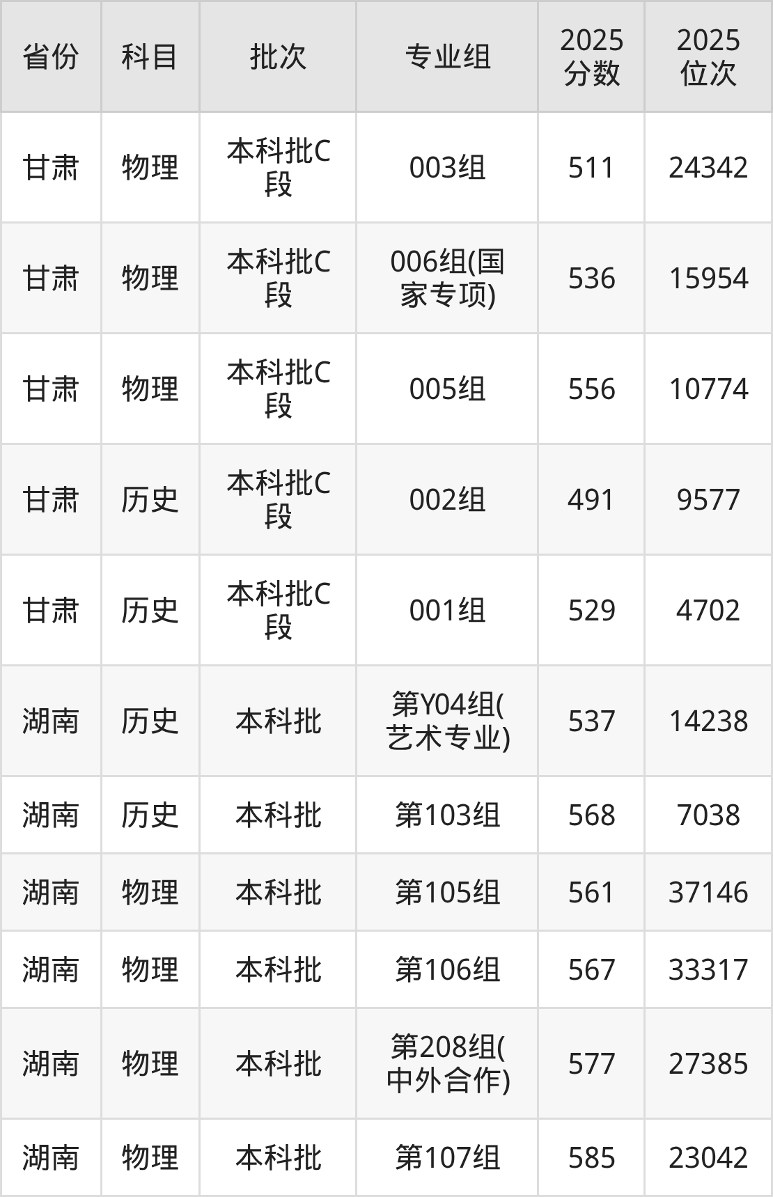 2025年投档录取最低分为537分,录取最低位次为29347名。